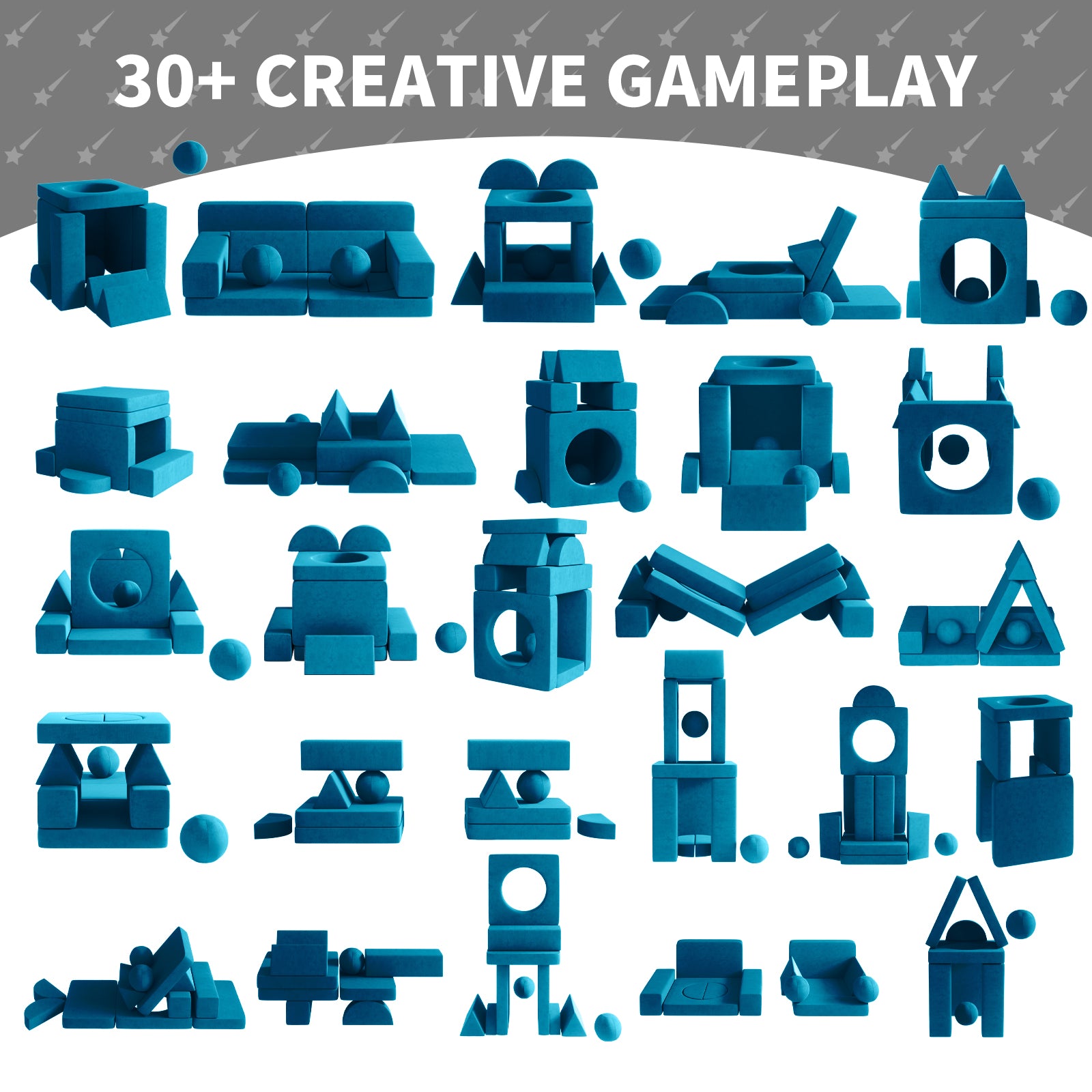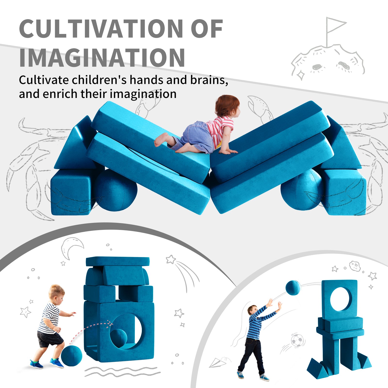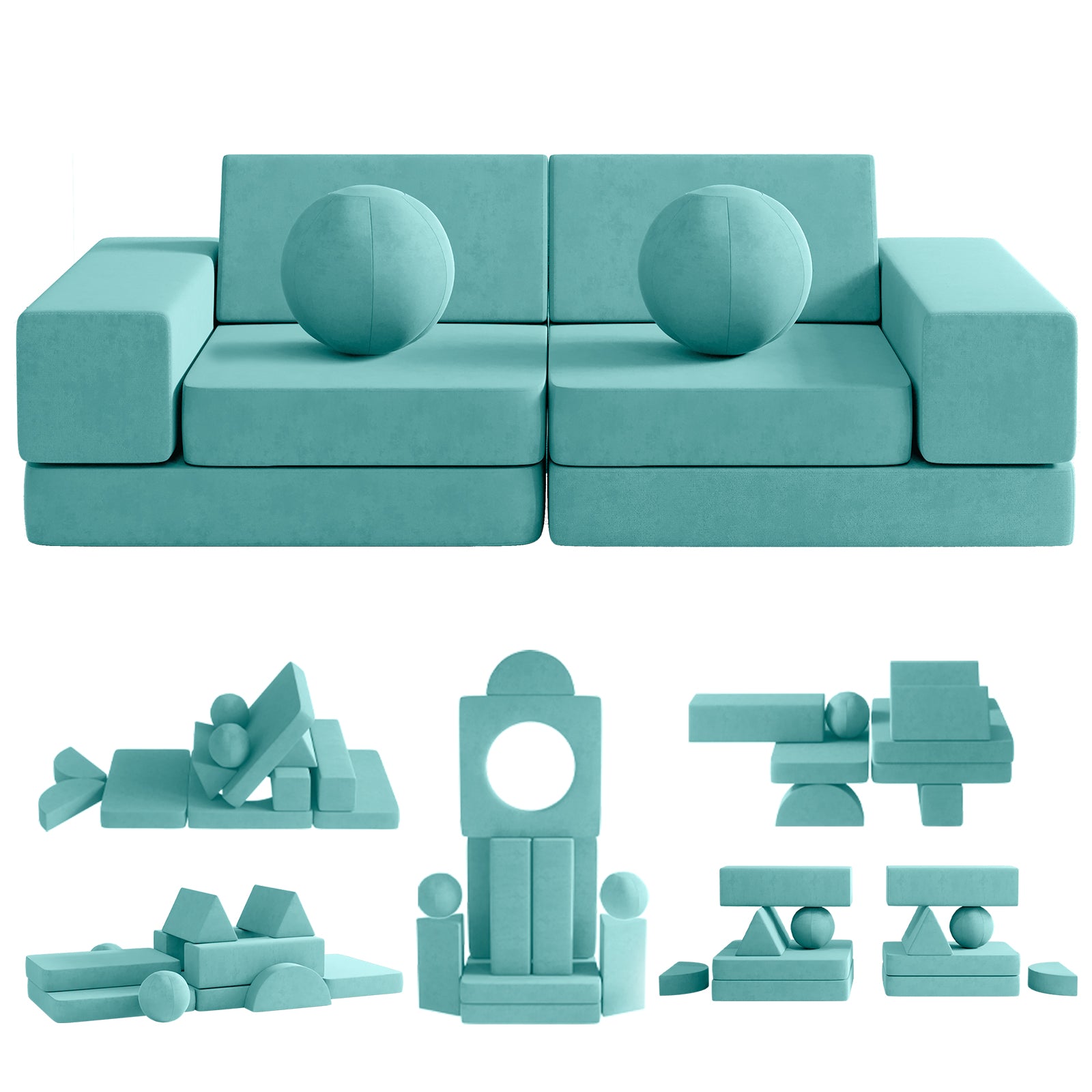 - 12Pcs Kid Couch: Our kids sofa couch can be used as a table football and crazy football with your friends. it could be a bowling path, the ball as a bowling ball; you can combine into a pitching game. you can combine into a crocodile car, sit on playing role -playing inside; you can combine 2 turrets to simulate fighting with your friends. It can also be combined into castles, tables and chairs, cars, slides, sofas, beds, etc. Children can create over 30 gameplay.