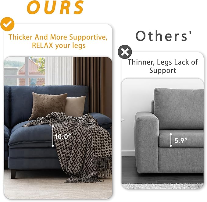 - COMFORT CLOUD COUCH: Indulge in the unparalleled comfort of our cloud sofa, meticulously crafted with premium materials to ensure an exquisite lounging experience. Its plush cloud-like feel will envelop you in relaxation, offering incomparable leisure moments