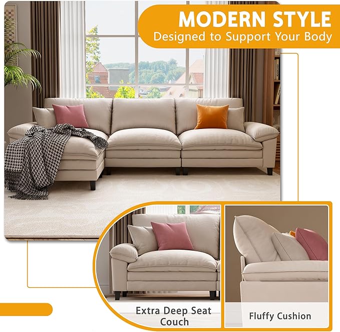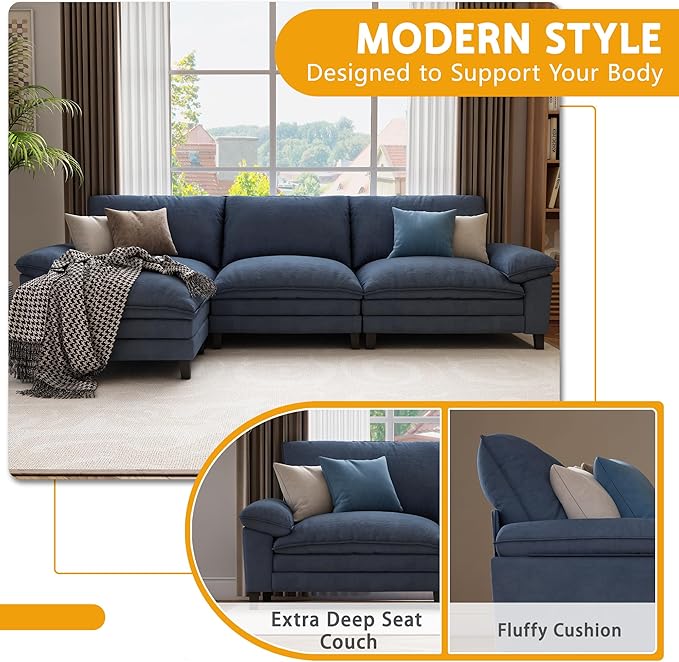 - MODERN 3 SEATER COUCH: The Cloud sectional Sofa features upholstered 2-layer seat cushions with high-resiliency foam to provide a soft and cozy feel. With its sleek and elegant design, it complements various home decor styles, adding a touch of sophistication to your living space