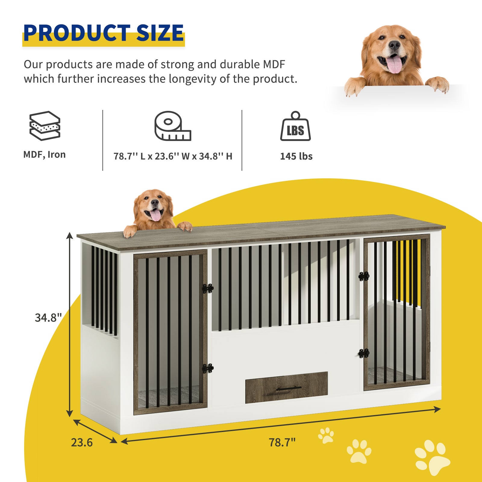 - GIFTS FOR DOGS -- As our family, dogs need a private space to rest. furniture dog crate has enough room for two dogs,This wood dog crate can make it convenient for loving owners to accompany the plush baby all the time (even during bedtime) no matter in the living room or bedroom. As naughty as it is, love is companionship!