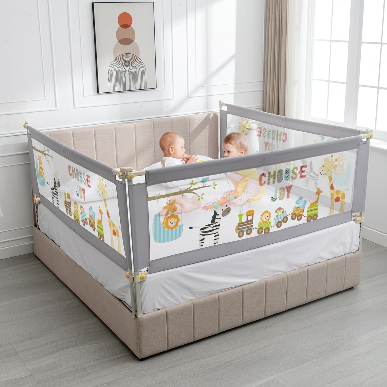 3 Pcs Baby Bed Rail Guard for Toddlers, Linor Toddler Bed Rails for King Bed, Foldable Bed Guards for Kids with 25 Levels Adjustable Height, Bed Fence for 2 to 11.8'' Mattress (Zoo Style, King)