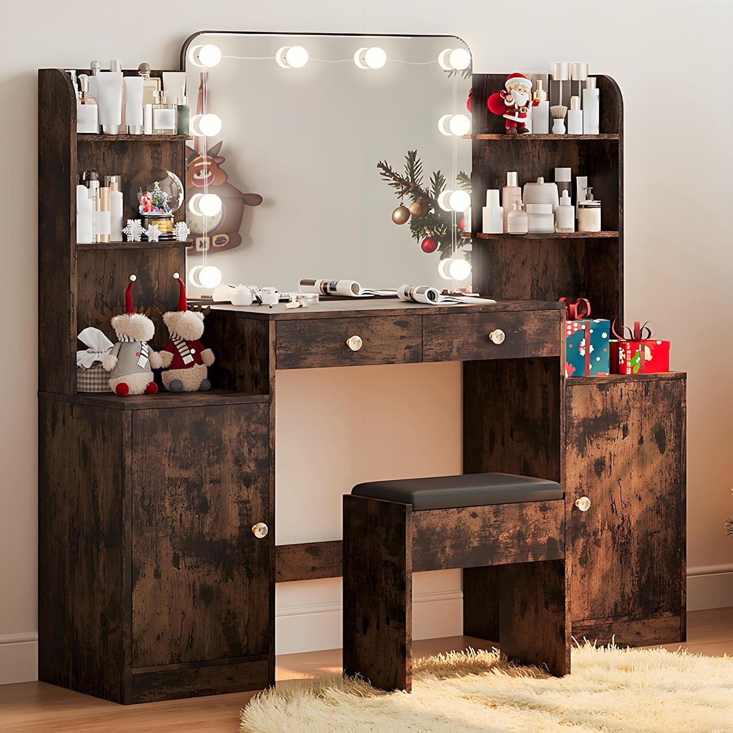- Spacious Makeup Vanity with Ample Storage: This 53" vanity table provides massive storage with 2 drawers and 2 cabinets, keeping your cosmetics, jewelry, and tall bottles organized.