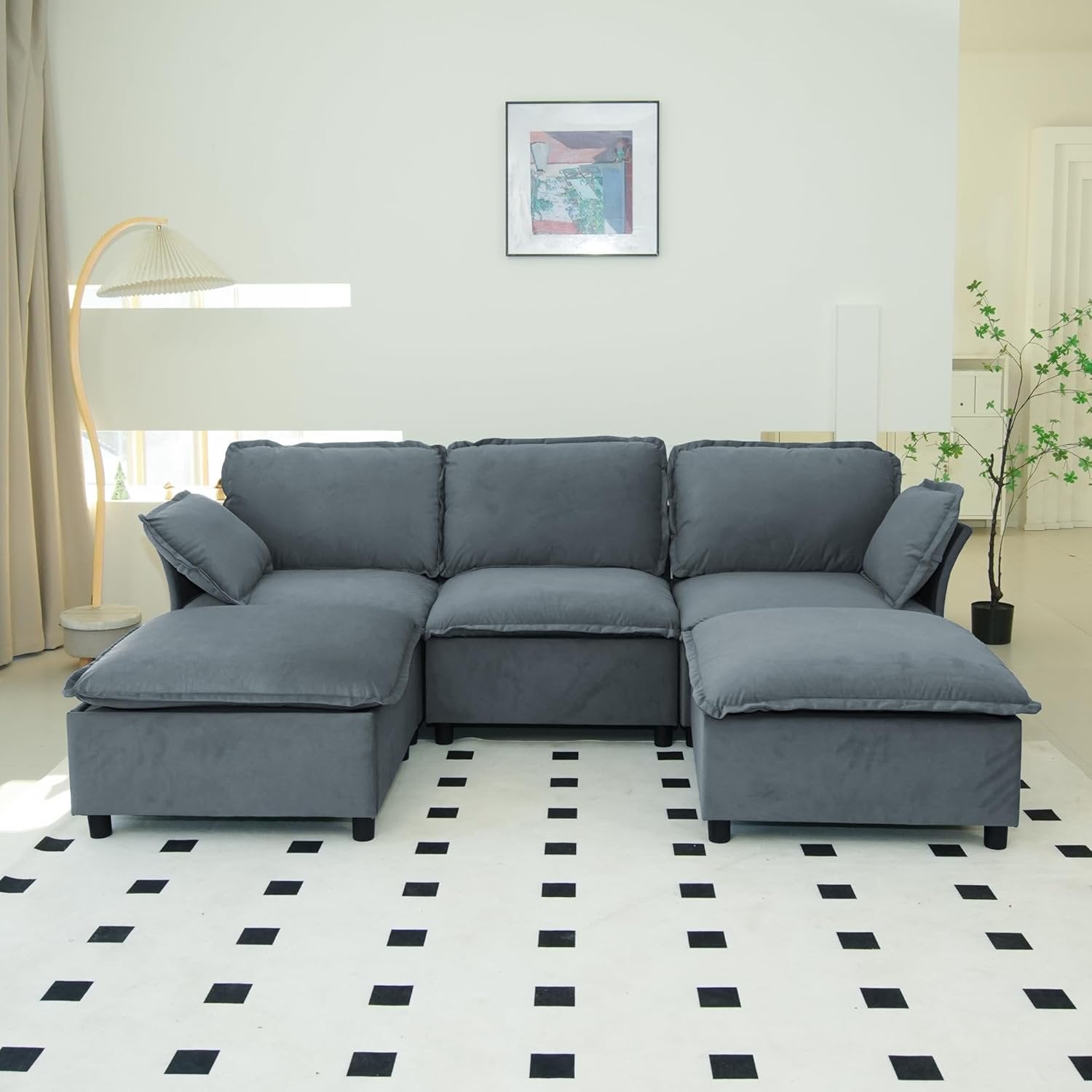 • Velvet Upholstered Sectional Sofa:Crafted with breathable, skin-friendly velvet fabric, this modular cloud sofa delivers lasting comfort. Removable, machine-washable seat and back cushions simplify maintenance while preserving plush softness.