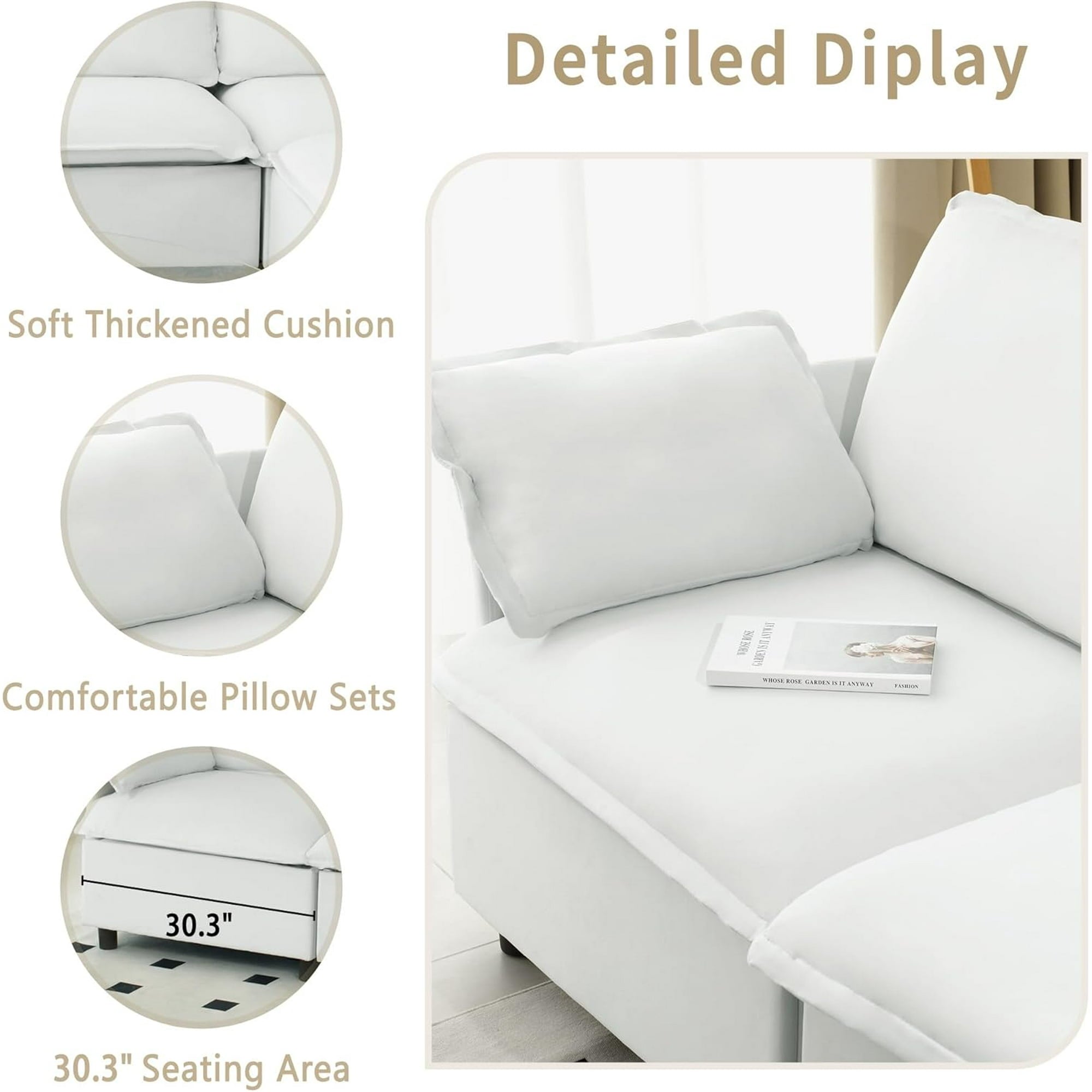 • Velvet Upholstered Sectional Sofa:Crafted with breathable, skin-friendly velvet fabric, this modular cloud sofa delivers lasting comfort. Removable, machine-washable seat and back cushions simplify maintenance while preserving plush softness.