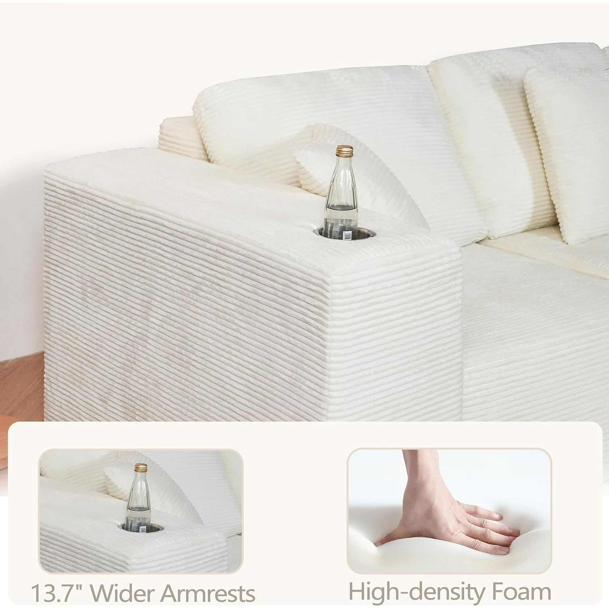 - Comfortable Boneless Sofa Couch: The dimensions of a single seat are 27.1”W * 29.1”D * 17.5”H, with 13.7" wide armrests featuring cup holders. The memory foam couch backrest conforms to the body's structure, and the seat cushion adopts a high-resilience sponge structure and spring package support, providing unparalleled comfort and support.