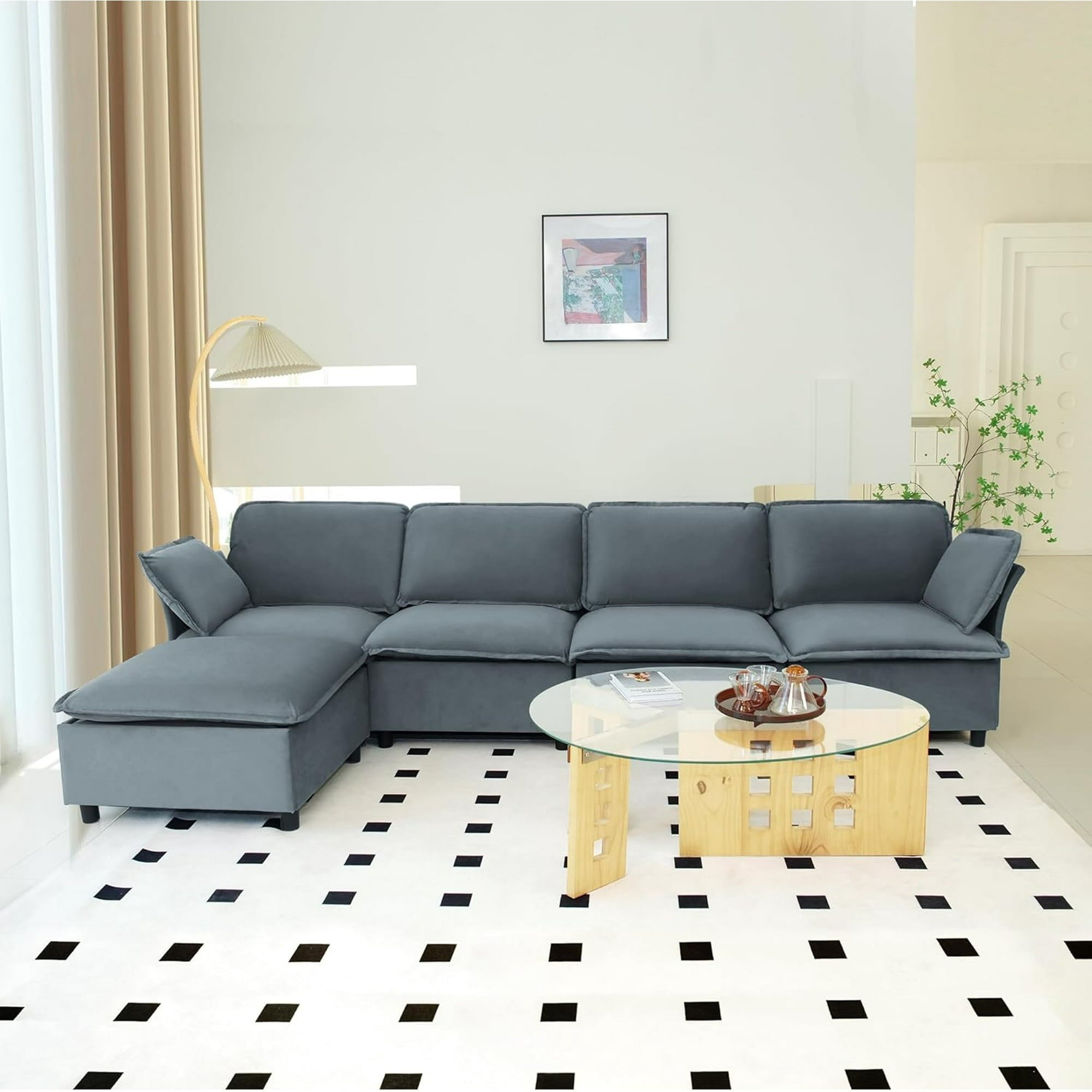 • Velvet Upholstered Sectional Sofa:Crafted with breathable, skin-friendly velvet fabric, this modular cloud sofa delivers lasting comfort. Removable, machine-washable seat and back cushions simplify maintenance while preserving plush softness.