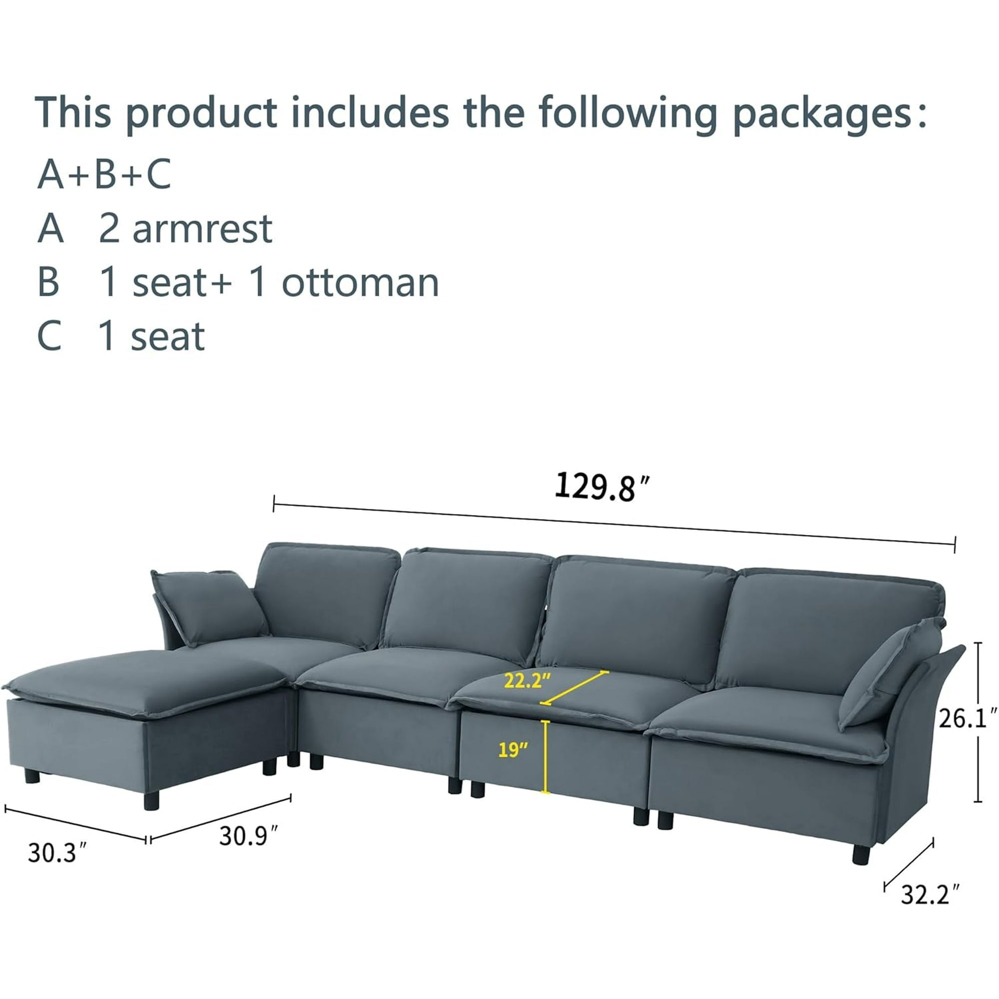• Assembly And Delivery: Designed for convenience, the sofa can be easily assembled, enjoying ease. Delivered in multiple packages, they may arrive separately. If you have any questions or need help with your sofa assembly, please contact us as soon as possible.