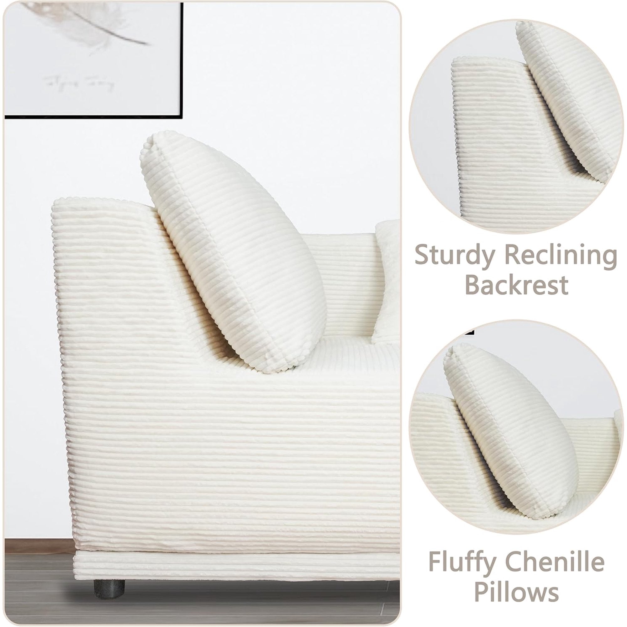 • Soft Corduroy Couch: This sofa is made of upgraded corduroy fabric, the fabric is skin-friendly and wrinkle-resistant, with a soft and comfortable touch, featuring a modern silhouette that creates an elegant and comfortable furniture environment.