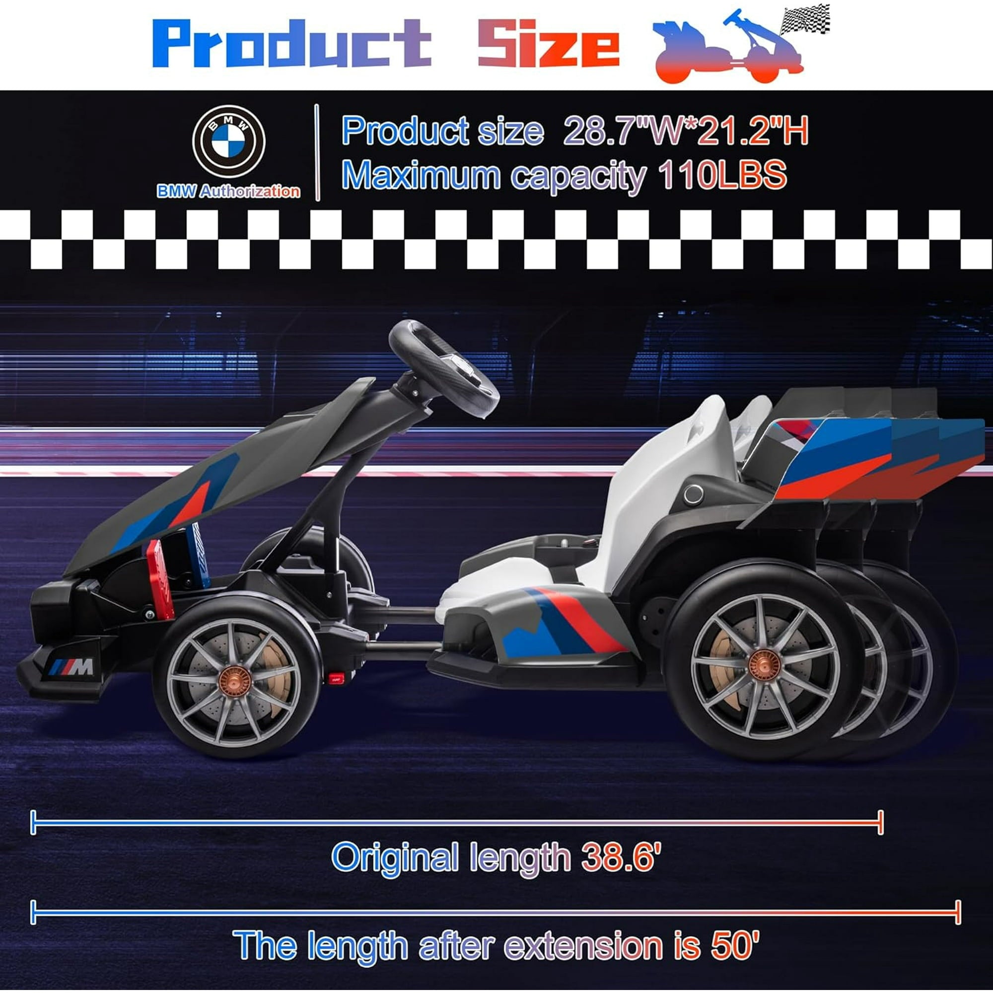 • Please note: Due to version updates, front sticker designs may vary (new and older versions will be shipped randomly). Both are equally stylish and do not affect the performance or quality of your BMW go kart.