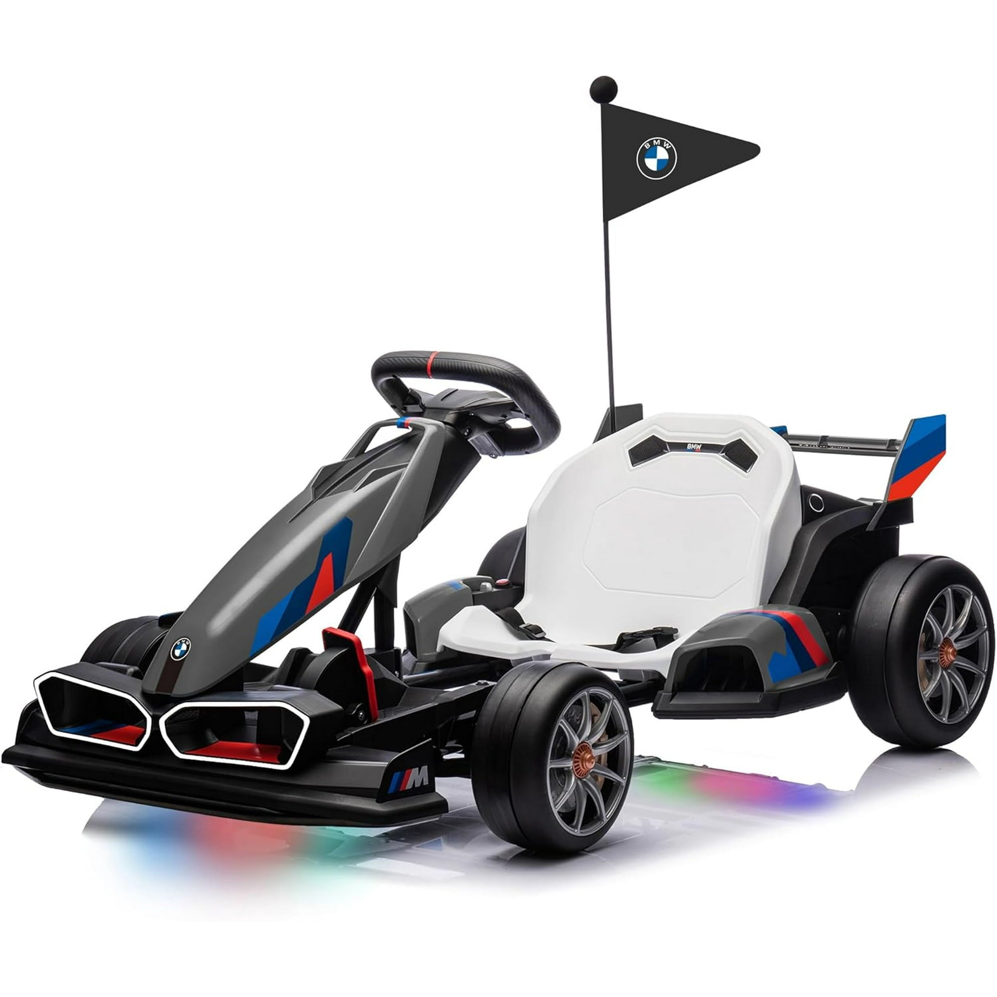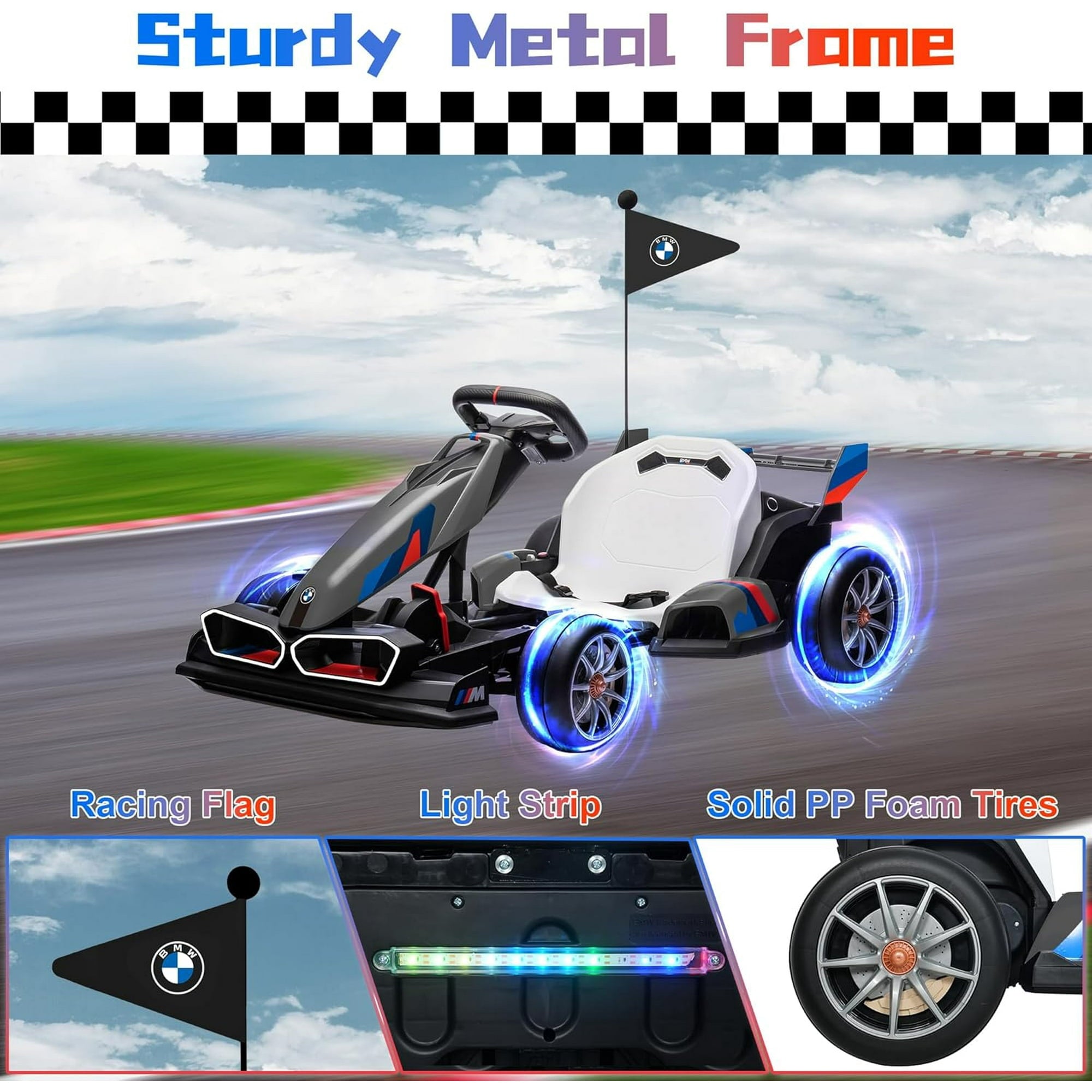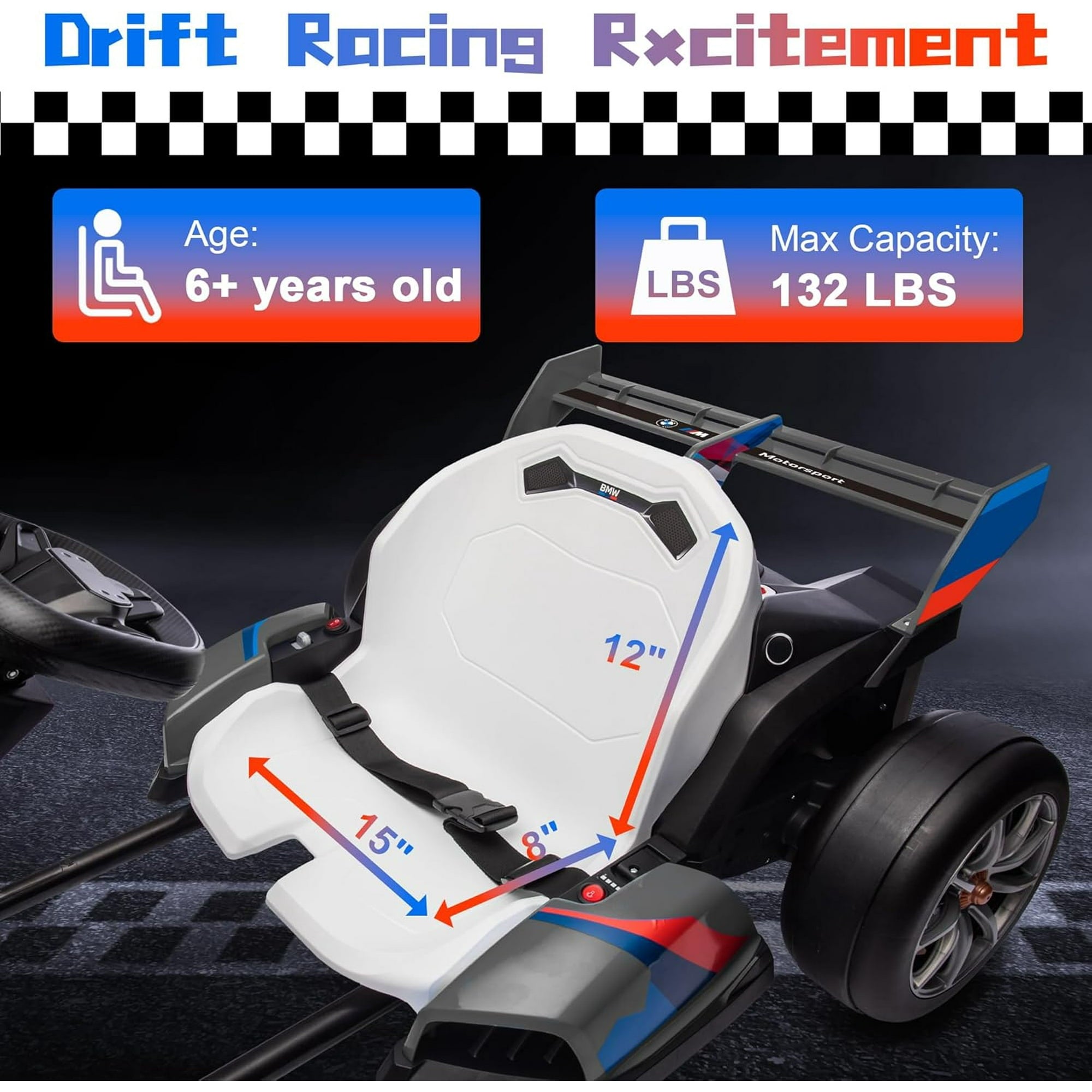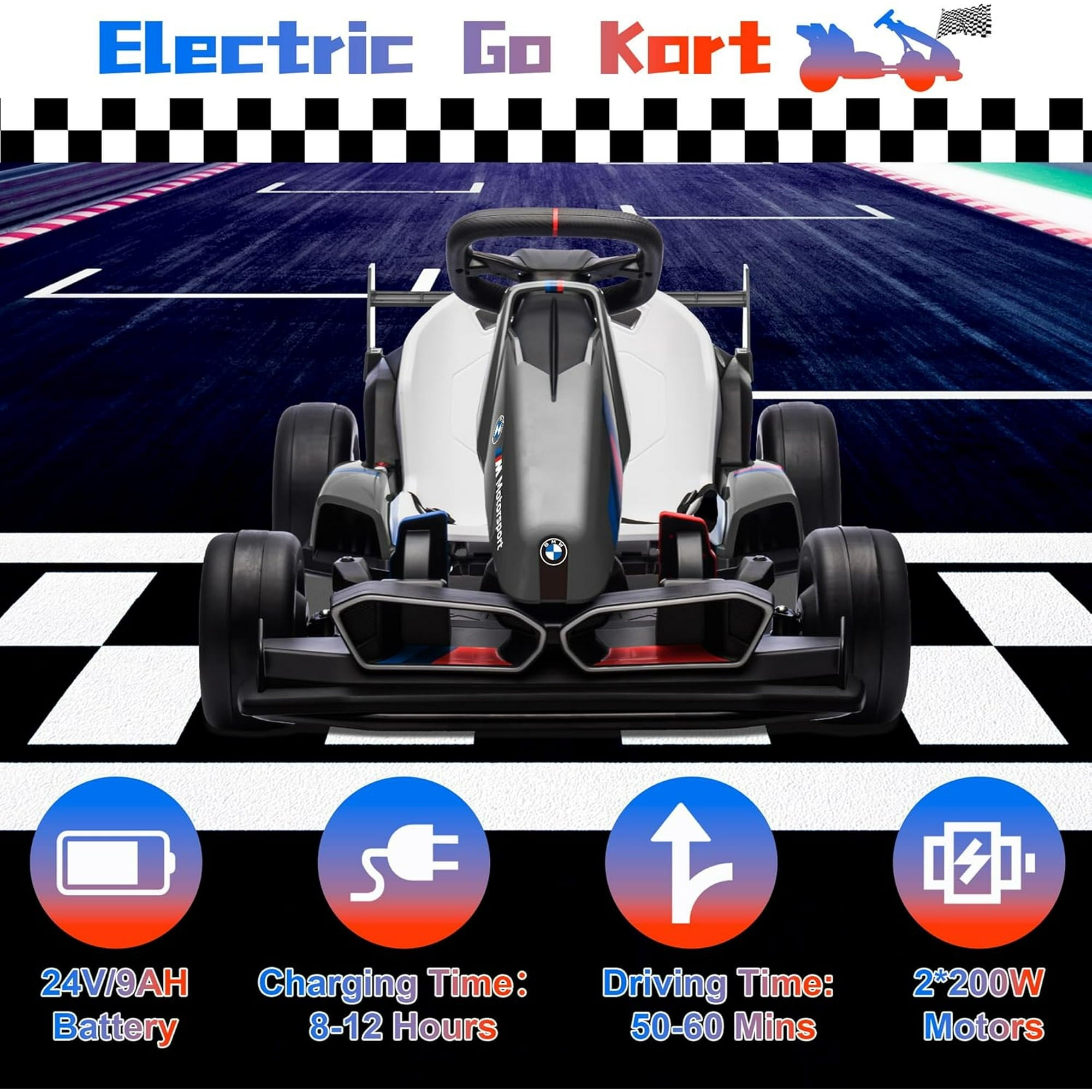 Akaber Electric Go Kart with Adjustable Seat, 24V 9AH Drift Kart with Dual 200W Motors, Crazy Go Cart for Kids Ages 6-12, Licensed BMW, LED Lights, Drift Mode and 2 Speed(Grey)