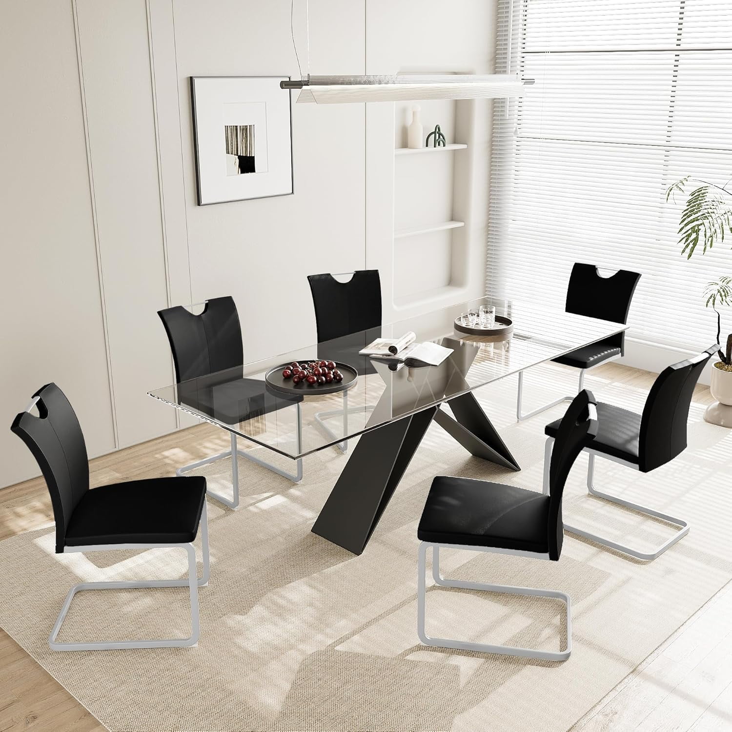 Akaber Modern Dining Chairs Set of 6, Faux Leather Upholstered Dining Room Side Chair with High Back, Metal Legs and Portable Handle, Armless Kitchen Chairs Set, Black