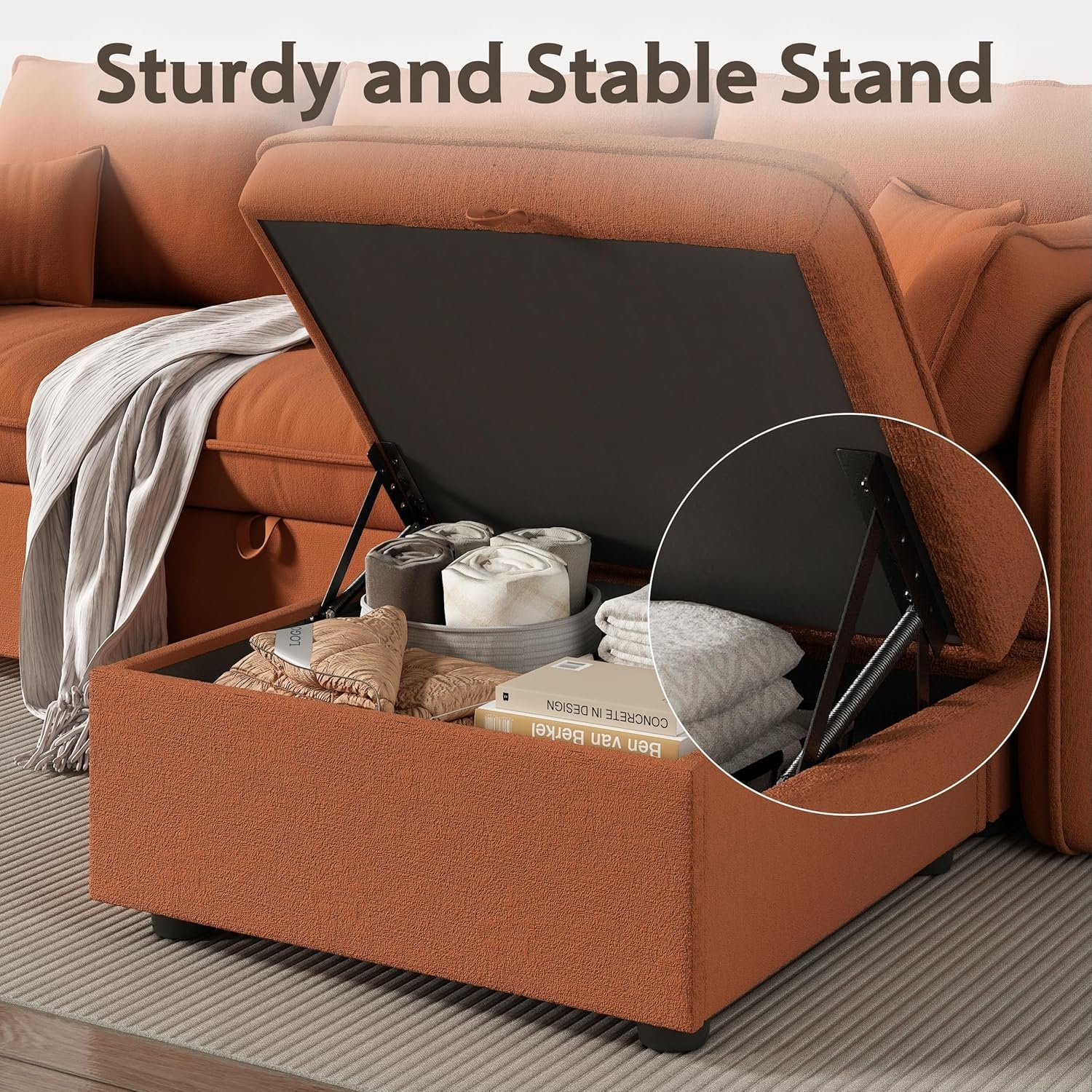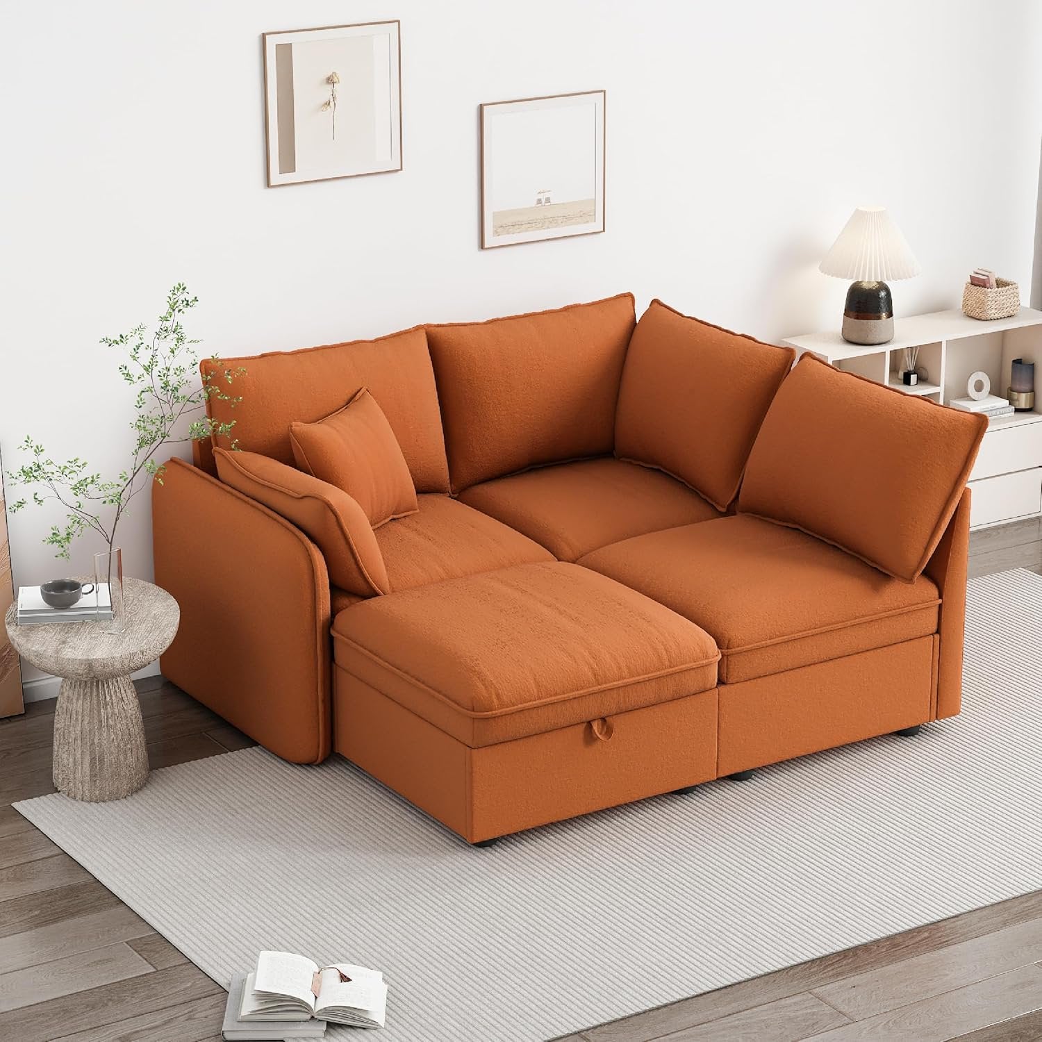 Akaber Modular Sectional Sofa, 107 Inch Couch with Movable Storage Ottoman, 25 Inch Deep Seat, Cloud Couches for Living Room, Orange