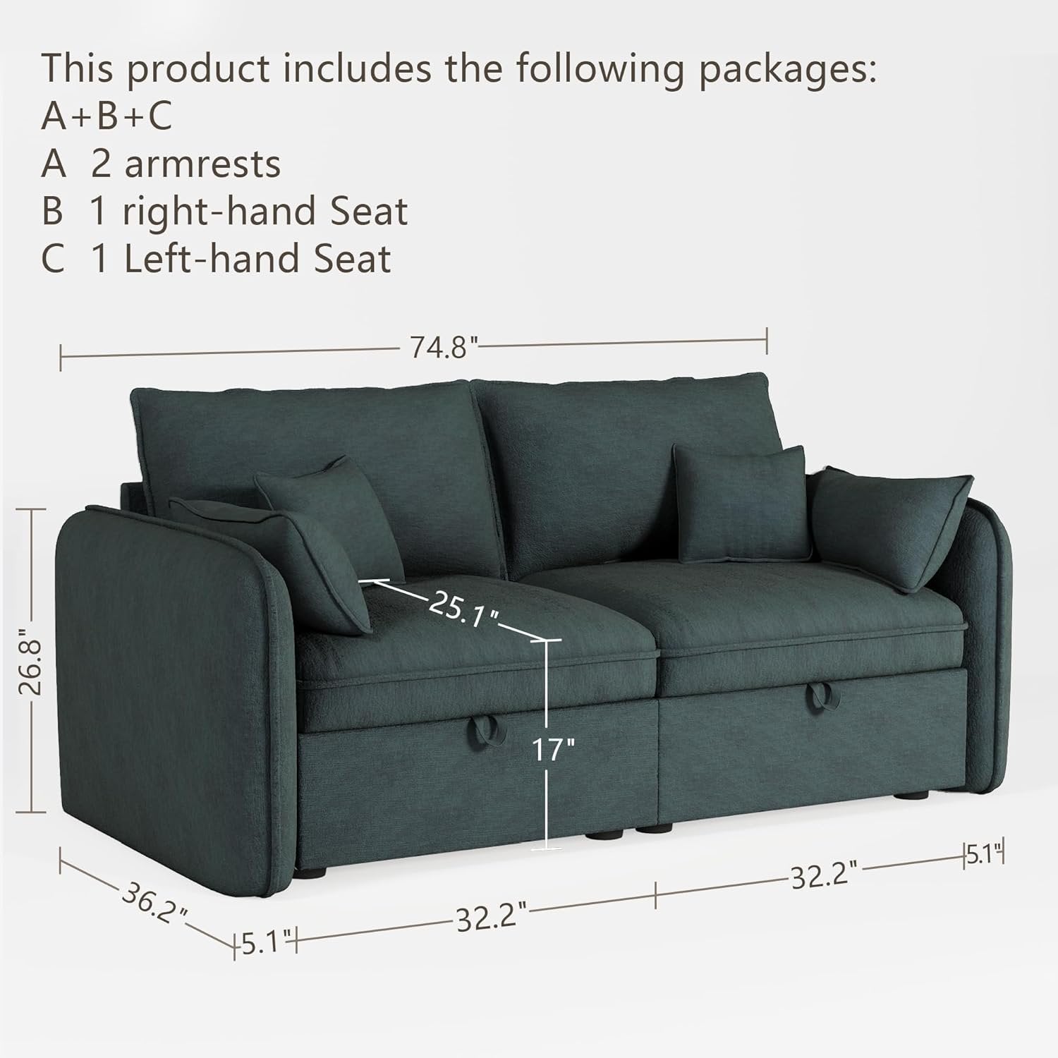 • Hidden Storage Space: The sofa is designed with storage compartments underneath the seating area, the built-in storage compartments are easy to access and spacious, perfect for storing blankets, pillows, or other items to help you save space while staying comfortable.