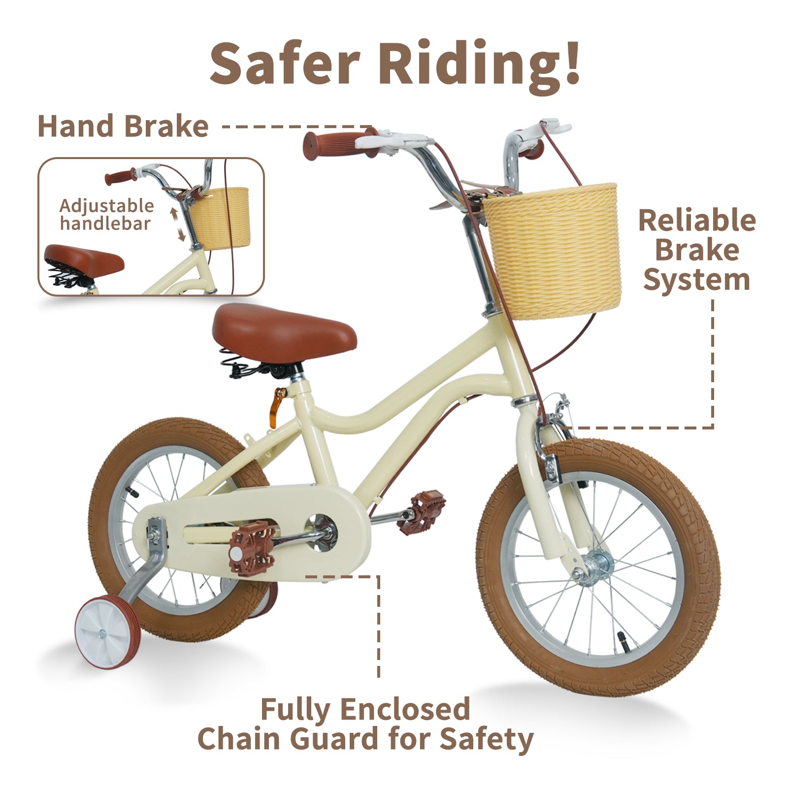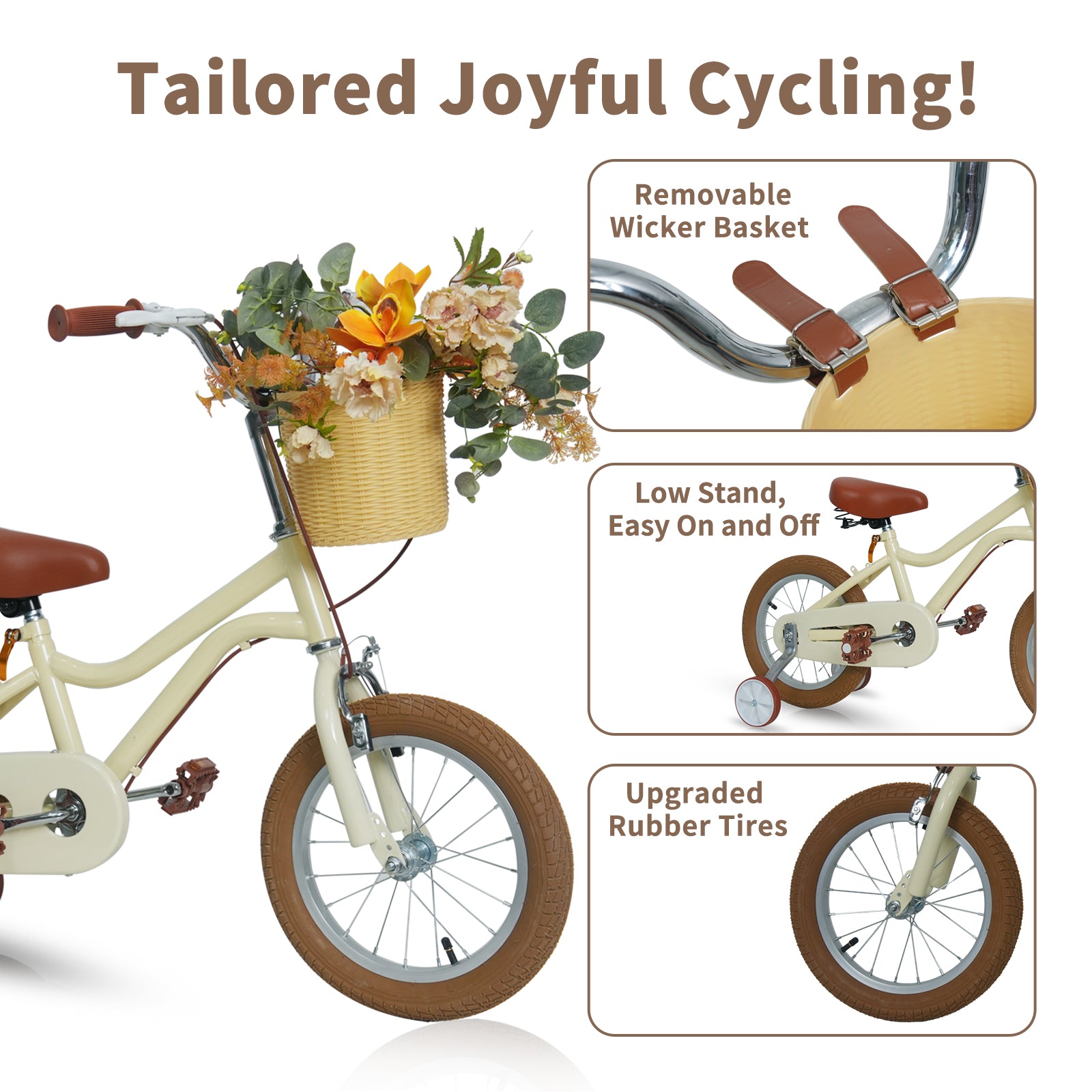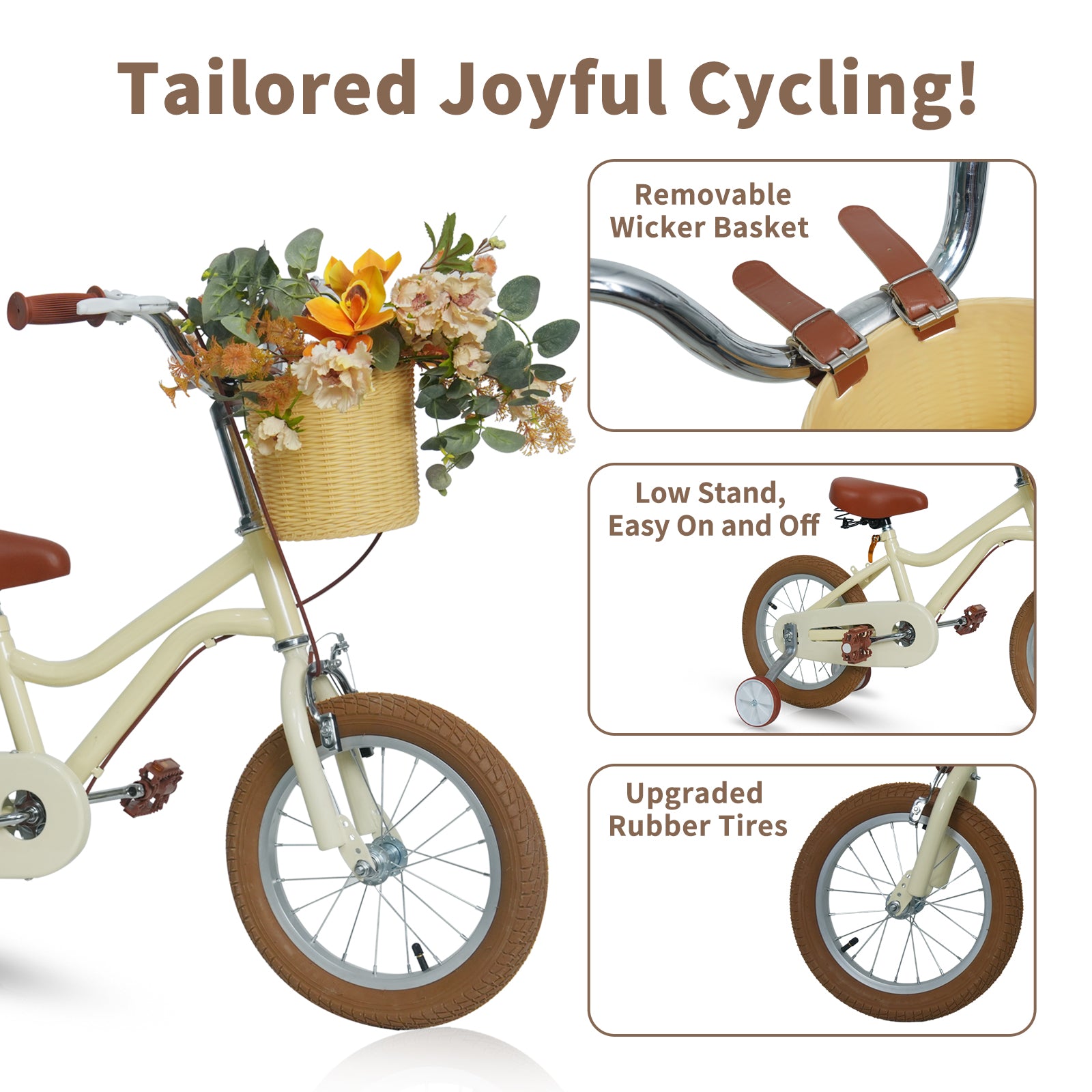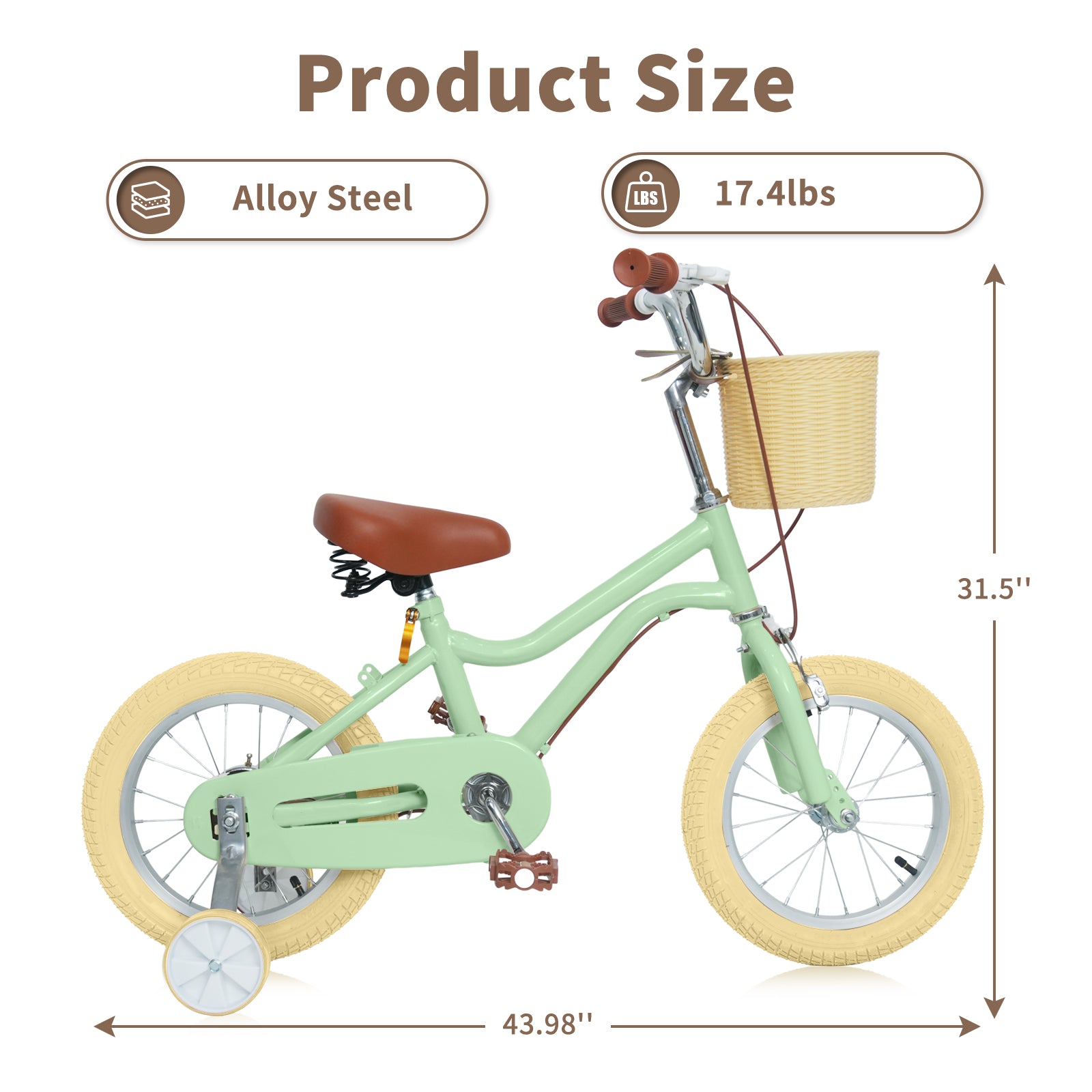 - 🚲Retro Design: Our bike with training wheels comes in bright colors, stylish and attractive. A beautiful wicker basket allows kids to pack their favorite stuffed animals or snacks to add extra fun to the ride.
