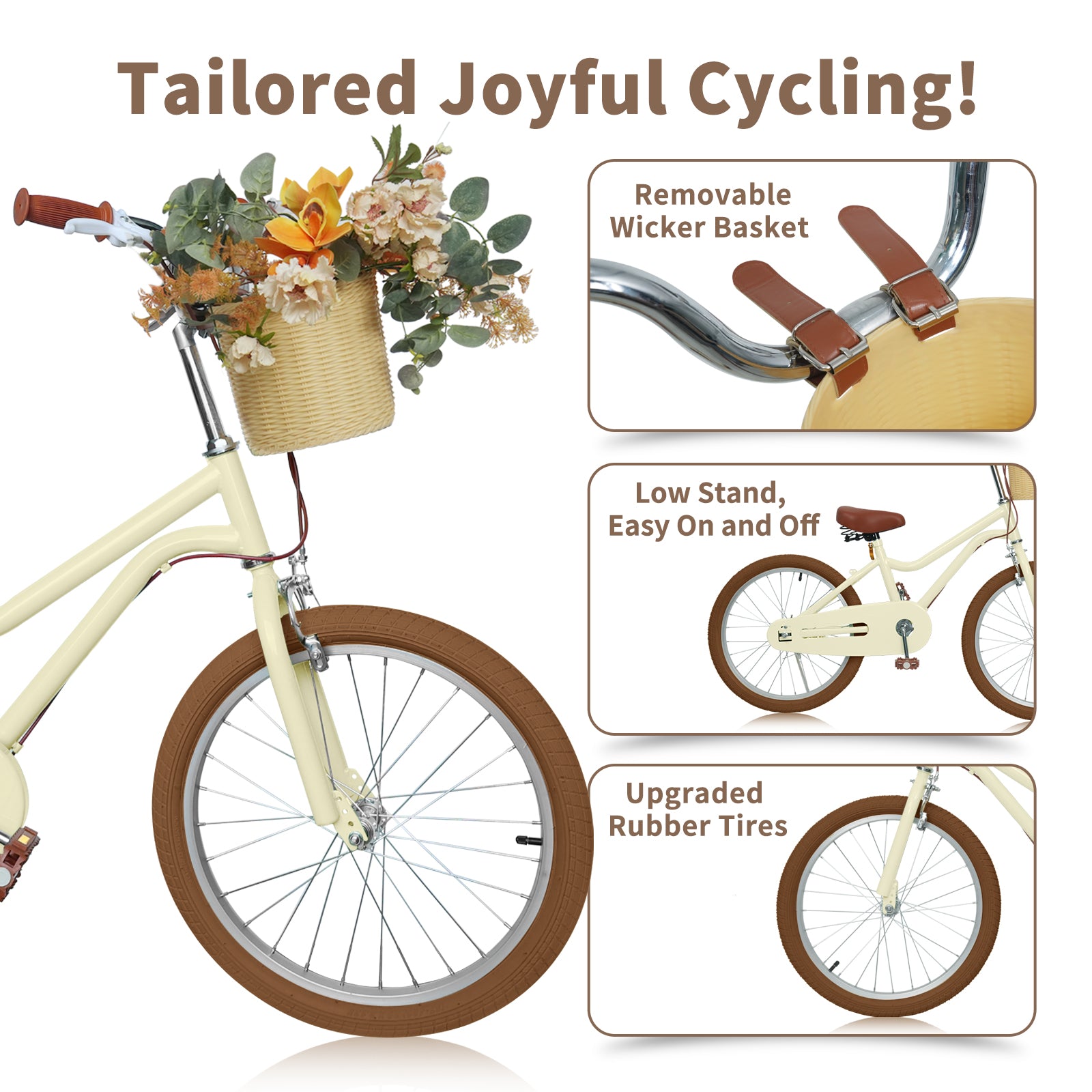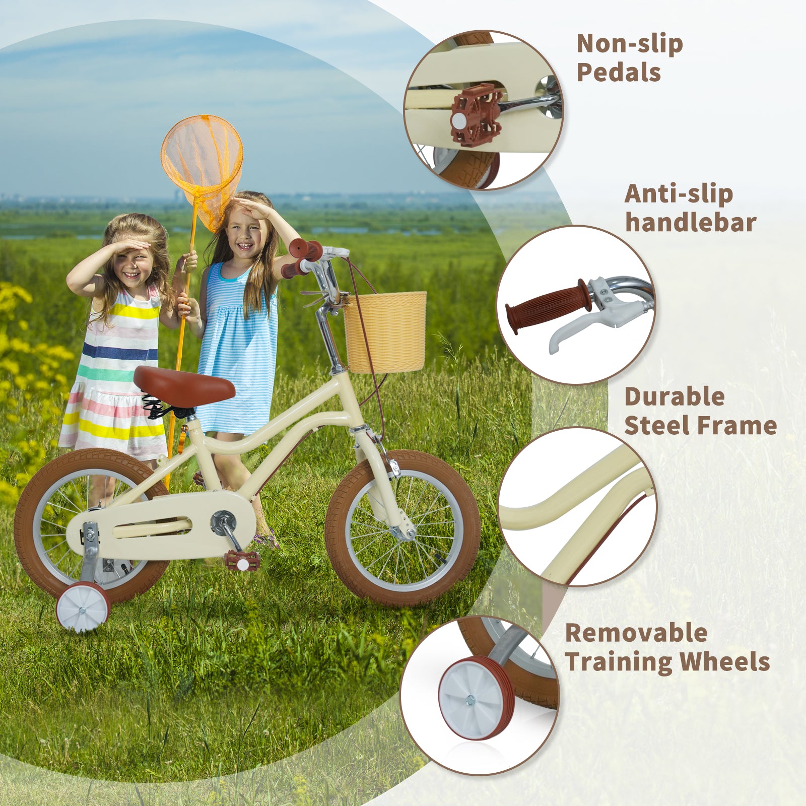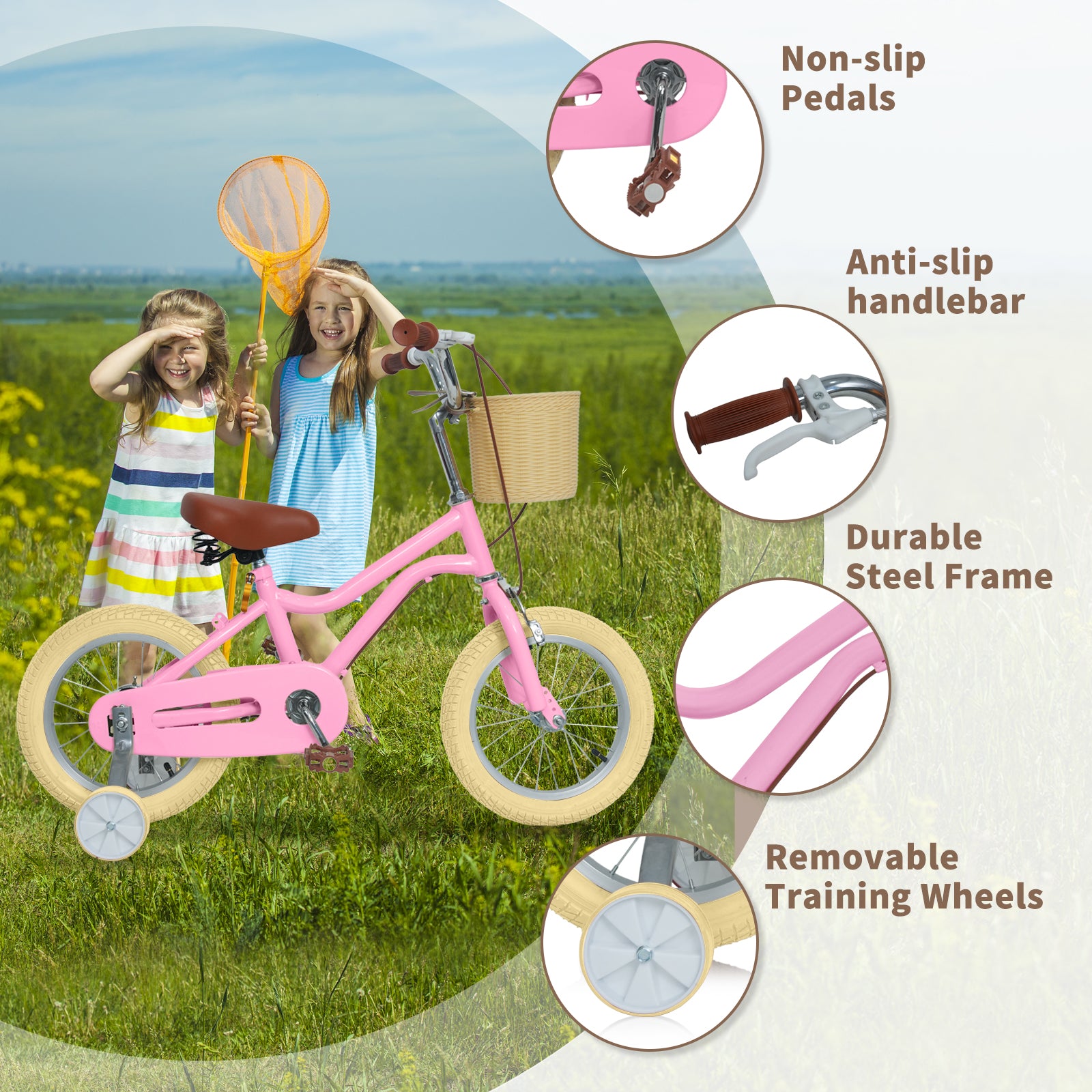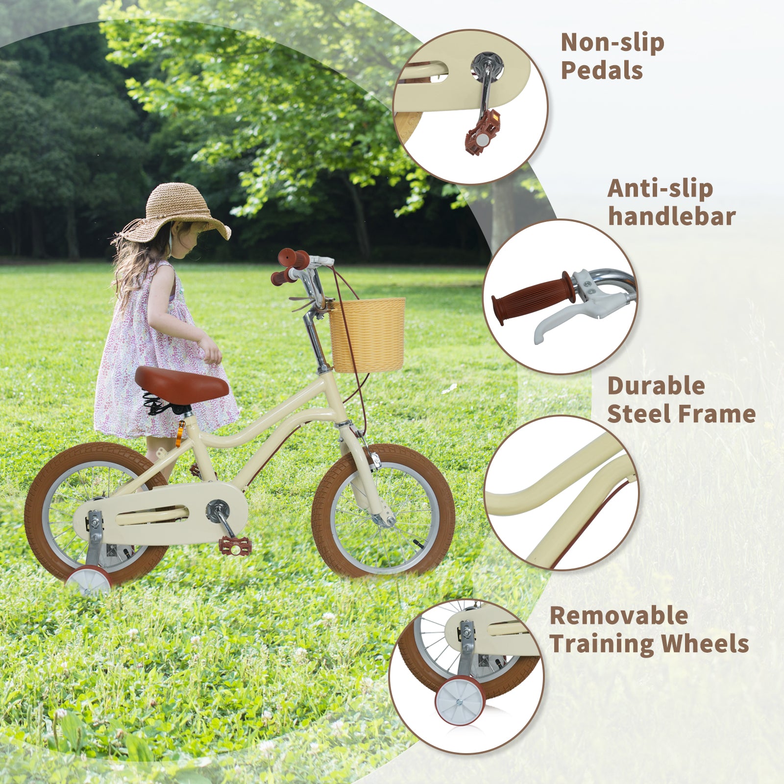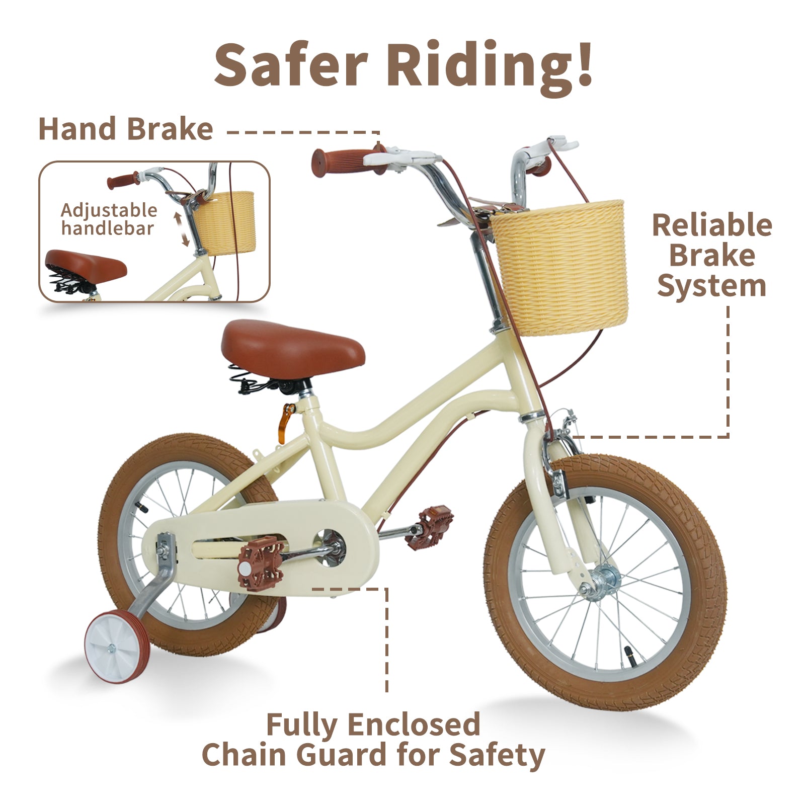 - 🚲Retro Design: Our bike with training wheels comes in bright colors, stylish and attractive. A beautiful wicker basket allows kids to pack their favorite stuffed animals or snacks to add extra fun to the ride.