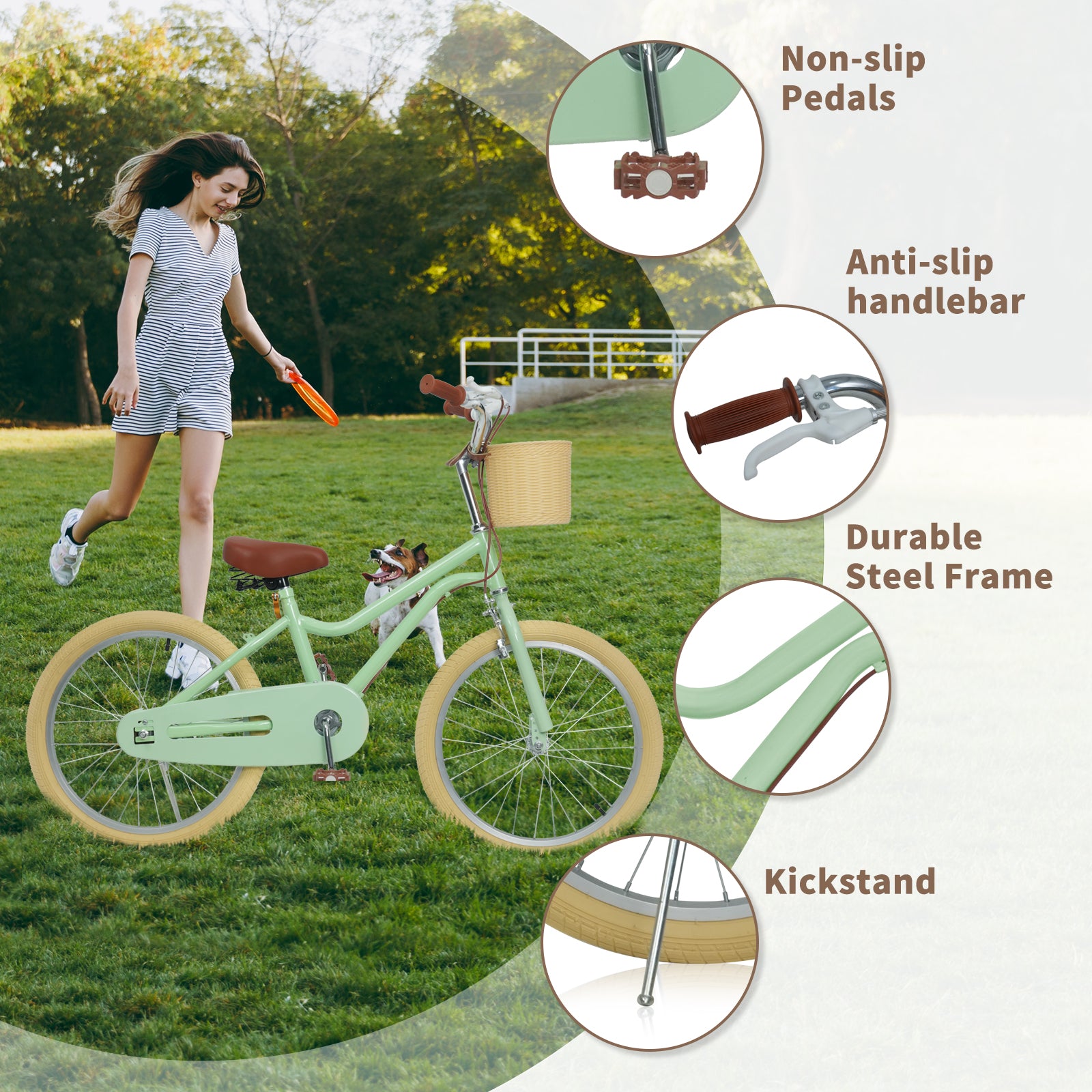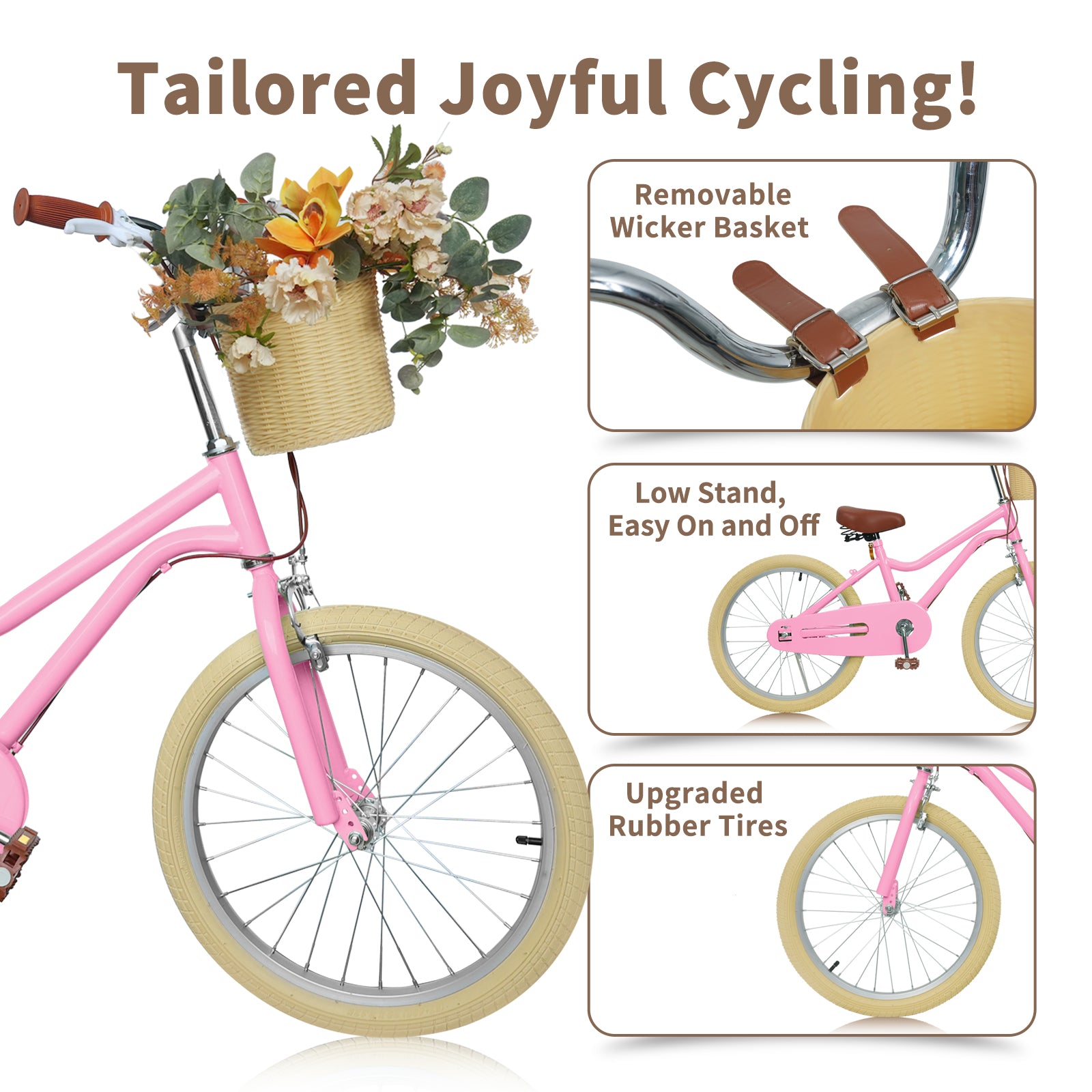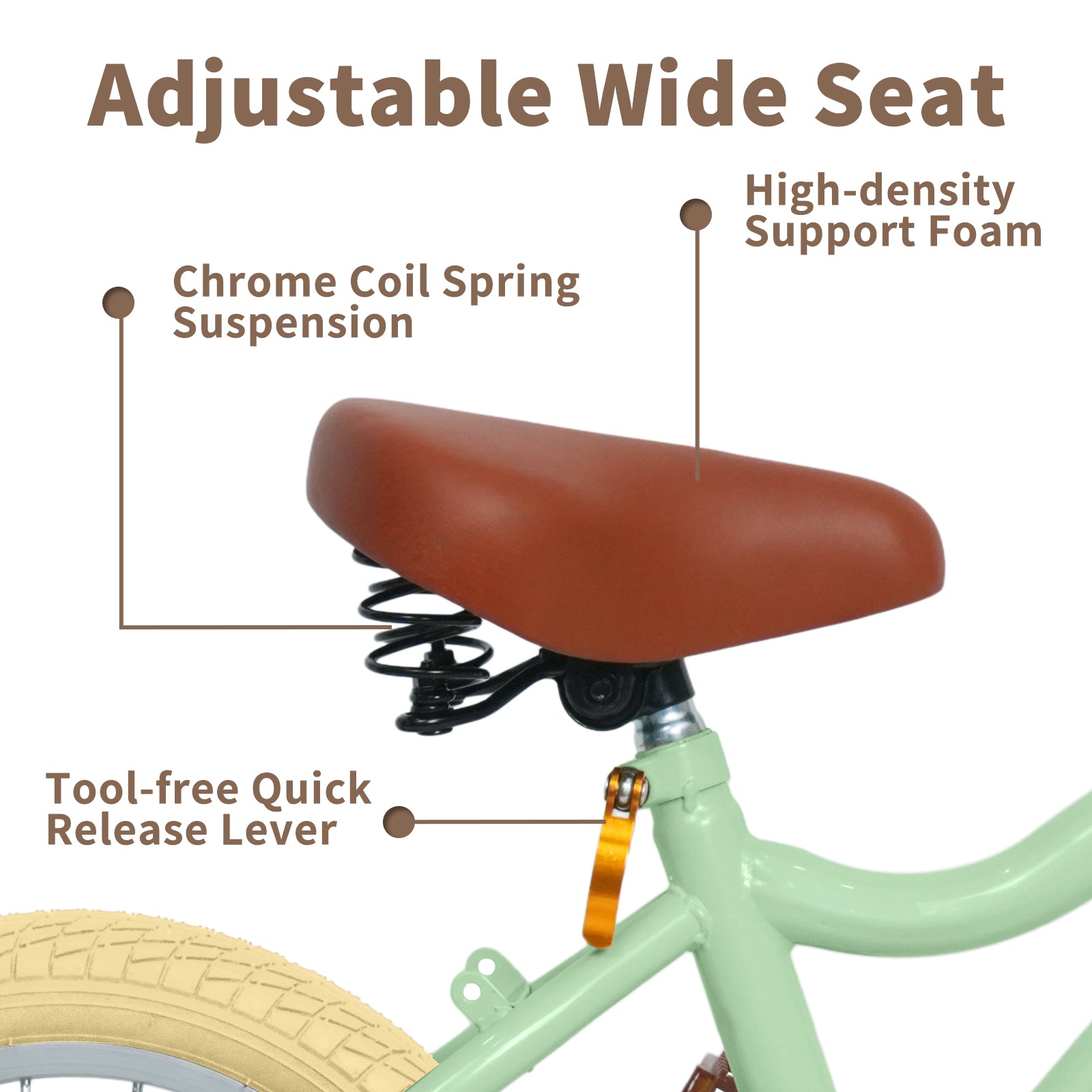 - 🚲Fit for Beginners: The detachable and stable training wheels can meet the needs of children at different stages, suitable for early riders. (THE 20-INCH GIRLS' BICYCLE ONLY HAS A KICKSTAND AND NO TRAINING WHEELS.) The handlebars of girls' bikes can be adjusted according to your child's height. Easily adjust the saddle without tools, allowing the bike to grow with your child.