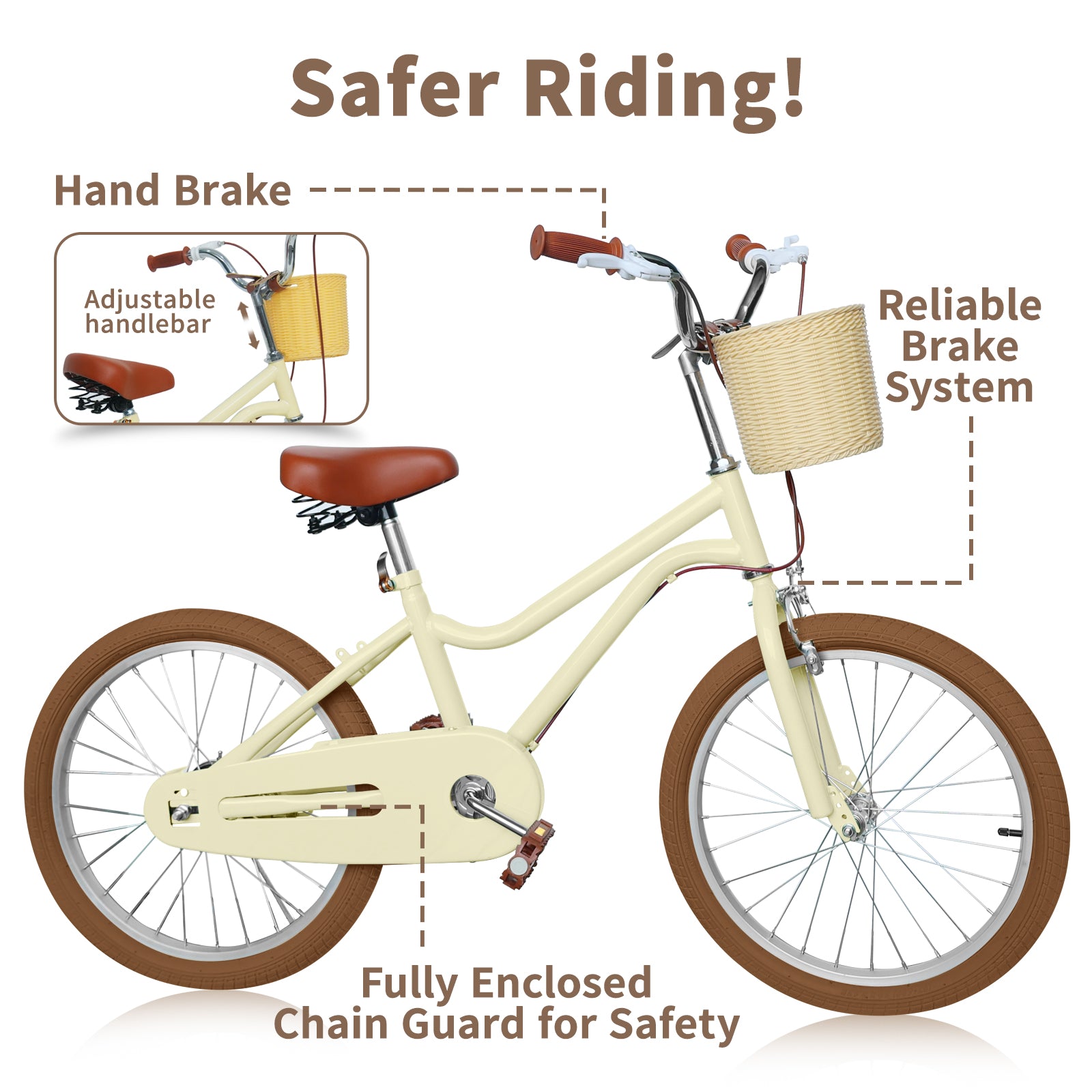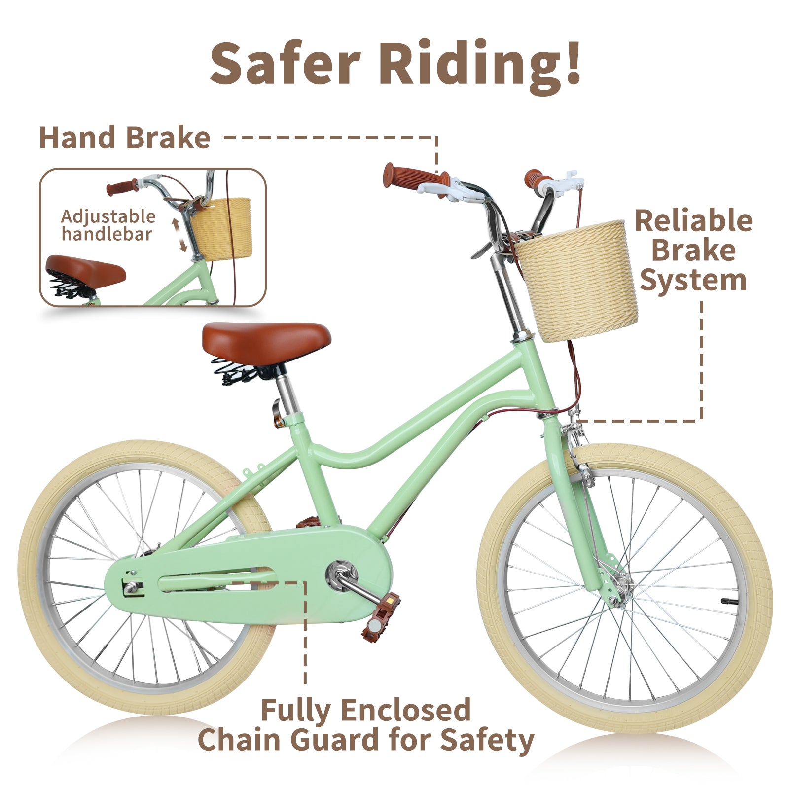 - 🚲Safer Riding: Our kids' bicycles' front-hand caliper brake plus rear roller coaster brake provide sufficient braking force, safer and greatly improve the safety of your children when riding. The enclosed chain guard prevents your child from being injured by contact with the chain and also better protects the chain's lifespan.