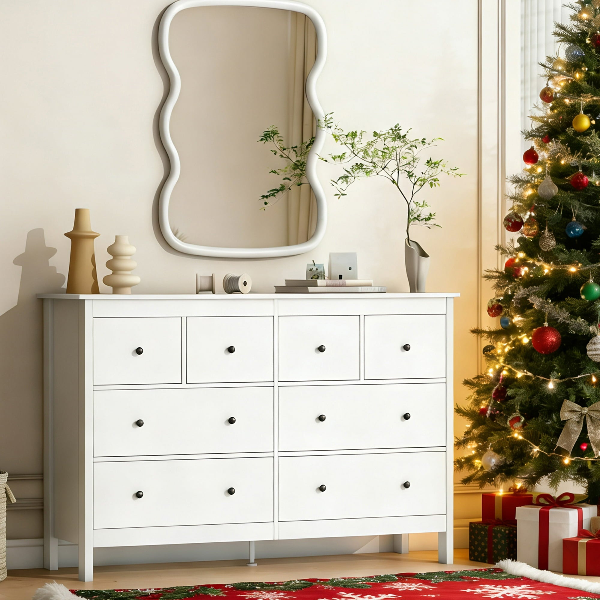Linor 8 Drawer Dresser, 55" Modern White Dressers, Chest of Drawers, Wooden Wide Dresser for Bedroom, Living Room, White