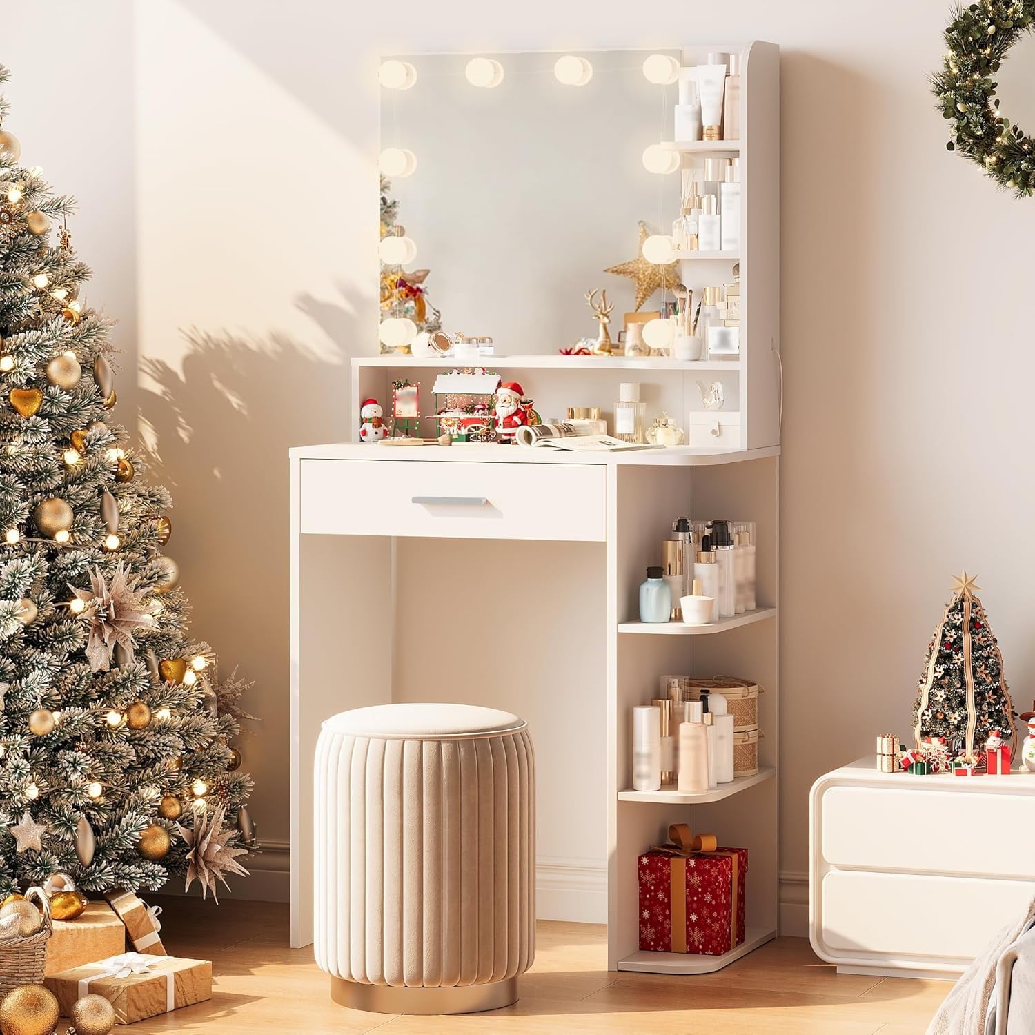 - 🫧POWERFUL 6-TIER STORAGE & DRAWER: Features 1 large drawer + 6 open shelves for organized clutter-free storage, maximizing space in 54.33”H compact vanity desk.