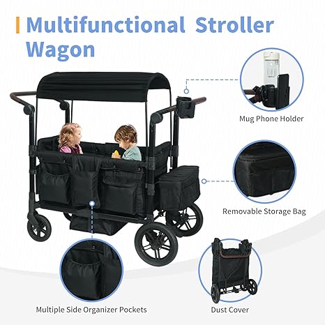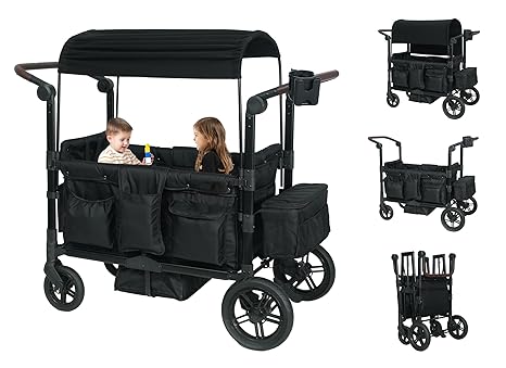 - 【Applicable to a variety of places】You can use this toddler wagon stroller at the beach, park, camping, travel, shopping, its excellent storage function, large storage space can fully meet your family needs. Made of oxford cloth, it is resistant to dirt and easy to clean. Customized for families with up to 4 children, it can hold up to 300 pounds.