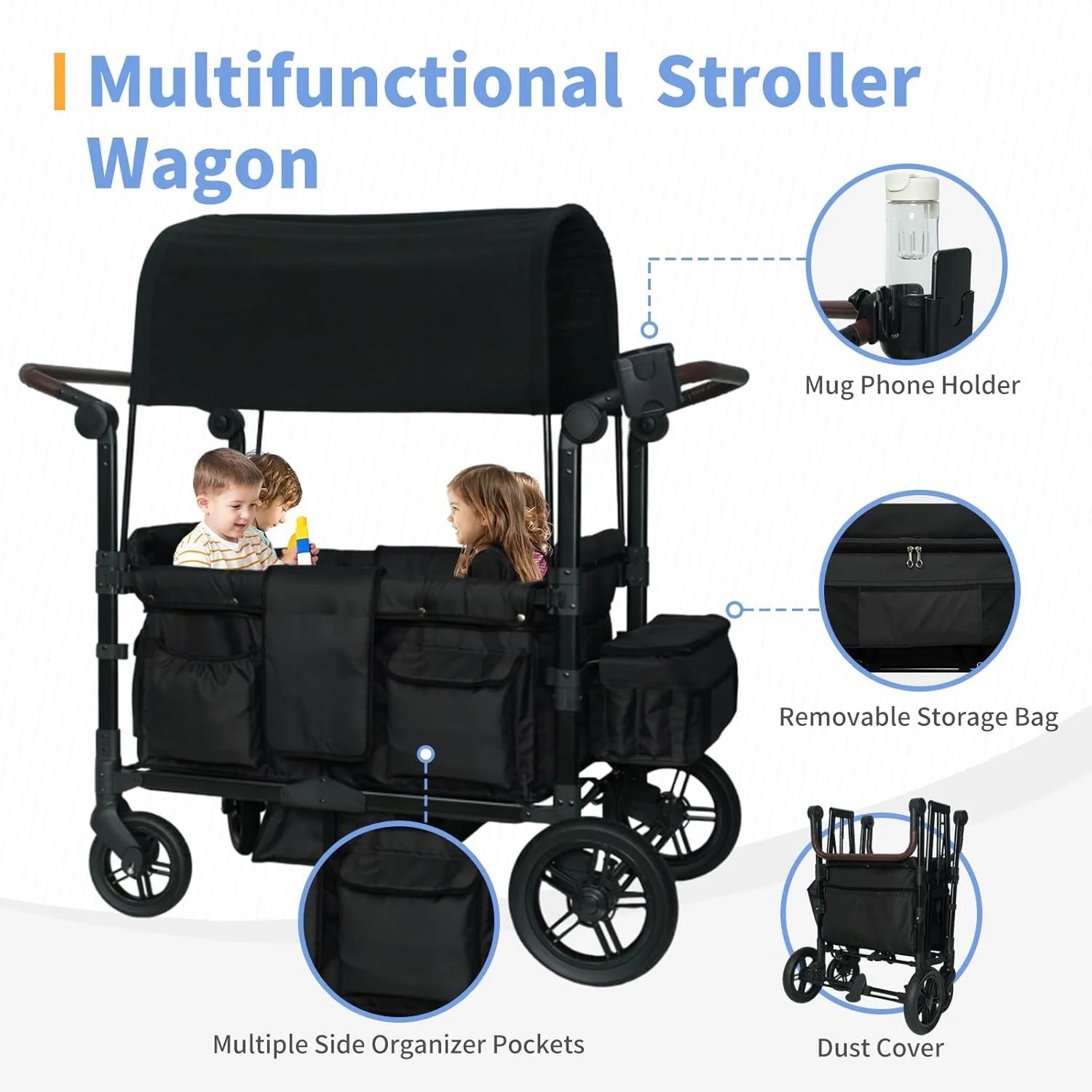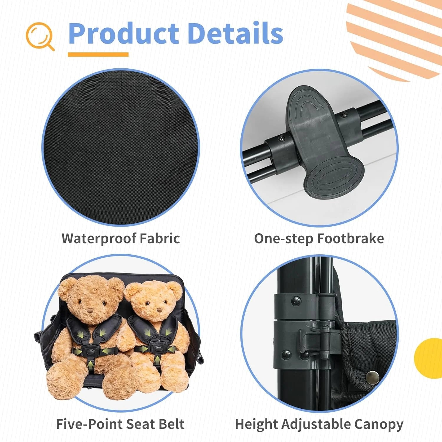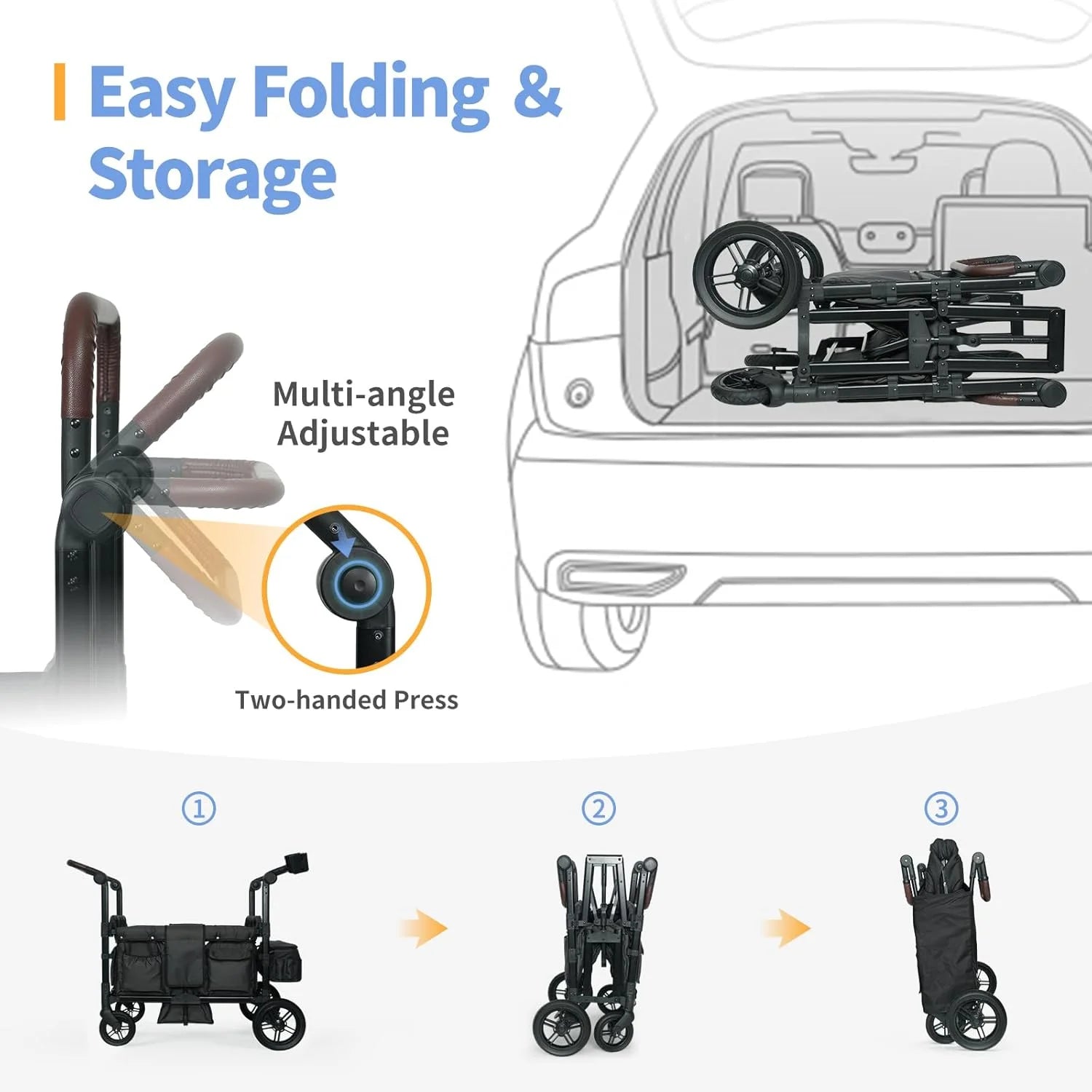 - 【Adjustable Double Push Bar】Takes 10 sections of adjustable double push bar design, a variety of angles to suit different heights of parental height, pushing and pulling more easily and conveniently