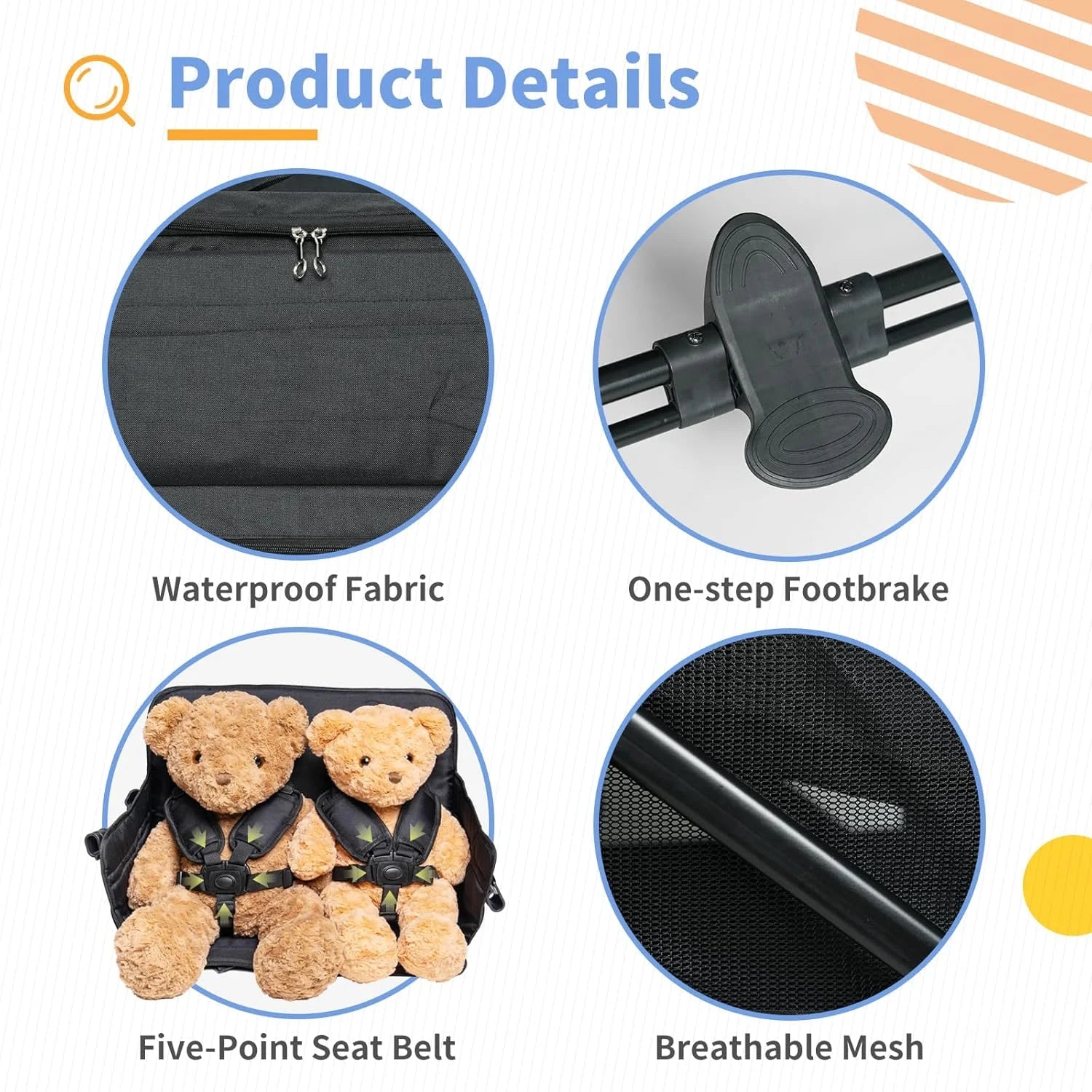 - 【Unique Design】Designed With a high chair, five-point safety belt, orientation-changeable seat, adjustable and removable canopy, multiple storage bags, a water cup cell phone holder, and snack holder