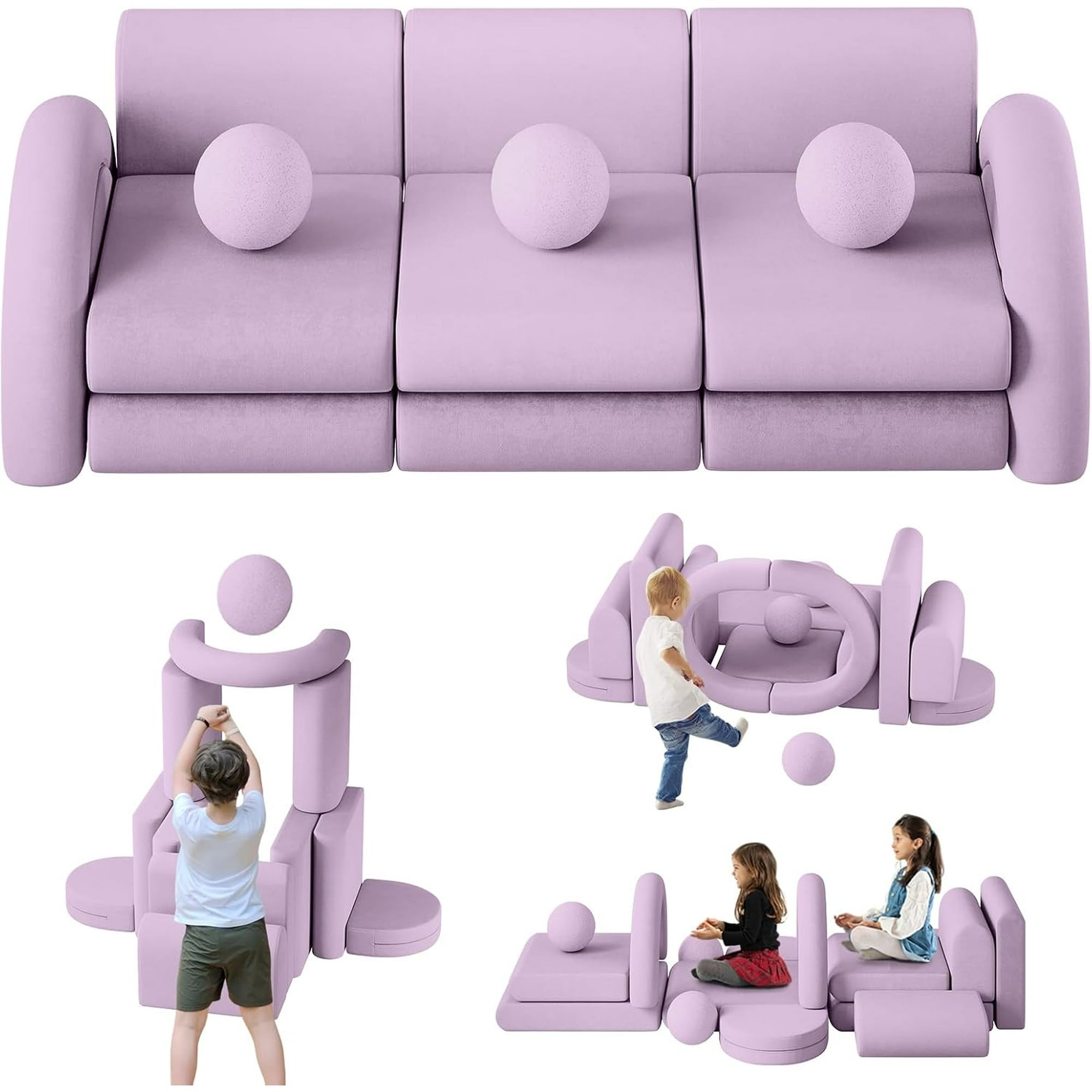 • 【16Pcs Kid Couch】Contains 9 curved cushions, 2 semi-circular cushions, 2 arched cushions, and 3 balls, kids can create different forms, shapes, or hideouts for endless adventures they want to experience