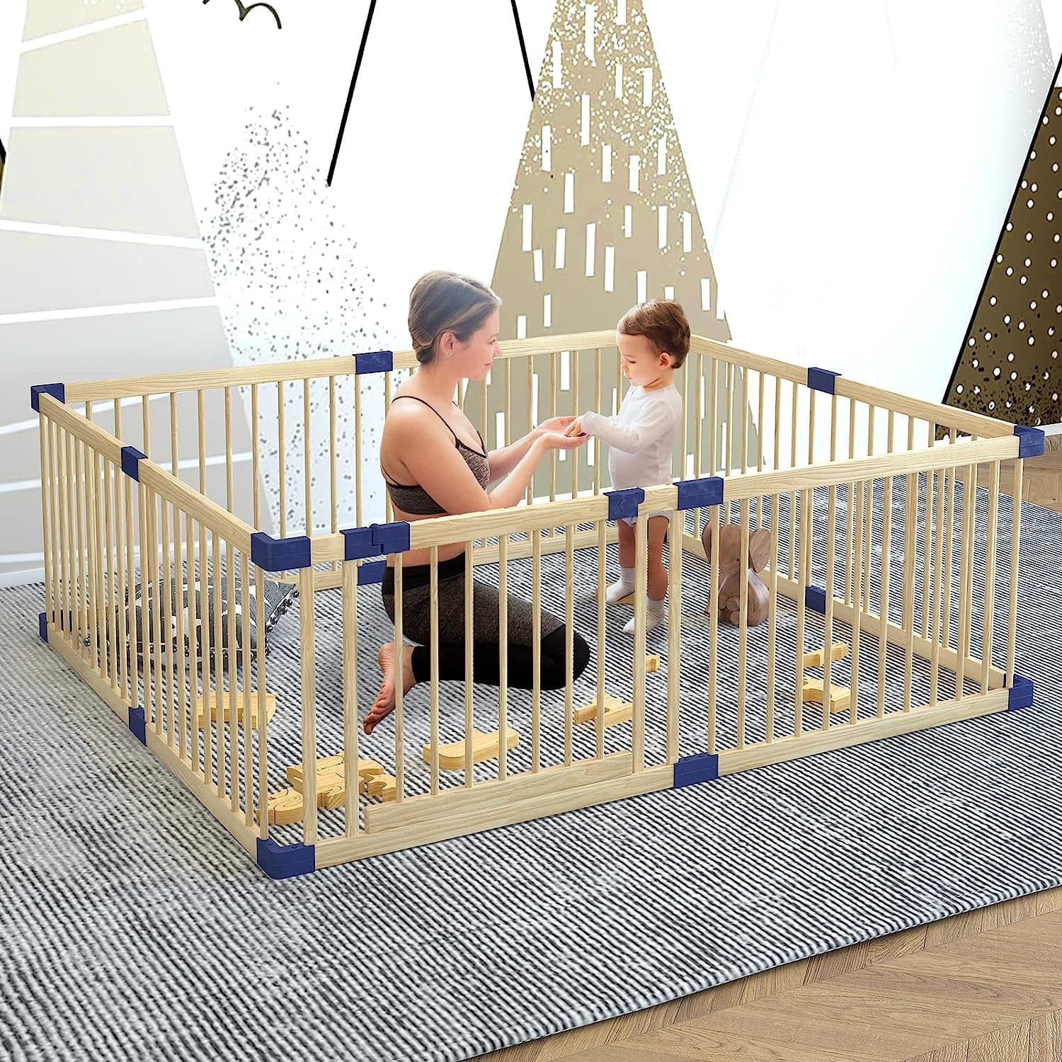 Baby Playpen is a versatile and safe activity center for your little one. Crafted from high-quality fir wood, this extra-large playpen offers a spacious and durable environment for your baby to explore and play. With its sturdy construction, smooth finish, and thoughtful safety features, the playpen ensures your child's well-being while allowing you to complete tasks nearby. The easy-to-clean and install design makes it a practical choice for busy parents, while the natural wood material provides a soothing, nature-inspired touch to your nursery. Whether you're looking to contain toys, encourage mobility, or simply provide a secure space for your baby, the DEYGIA Baby Playpen is an excellent addition to your home.